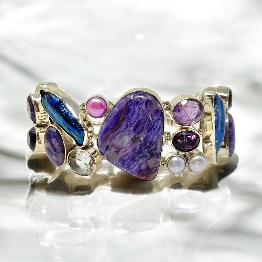 • Handcrafted with a mesmerizing blend of Charoite, Amethyst and Quartz.
