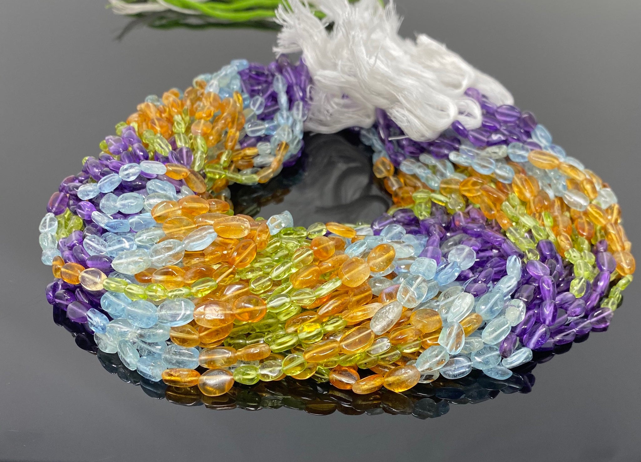 Multi Gemstone Oval Beads, Beads, Natural Gemstone Beads, Jewelry Supplies, Wholesale Bulk Beads , 13” Strand