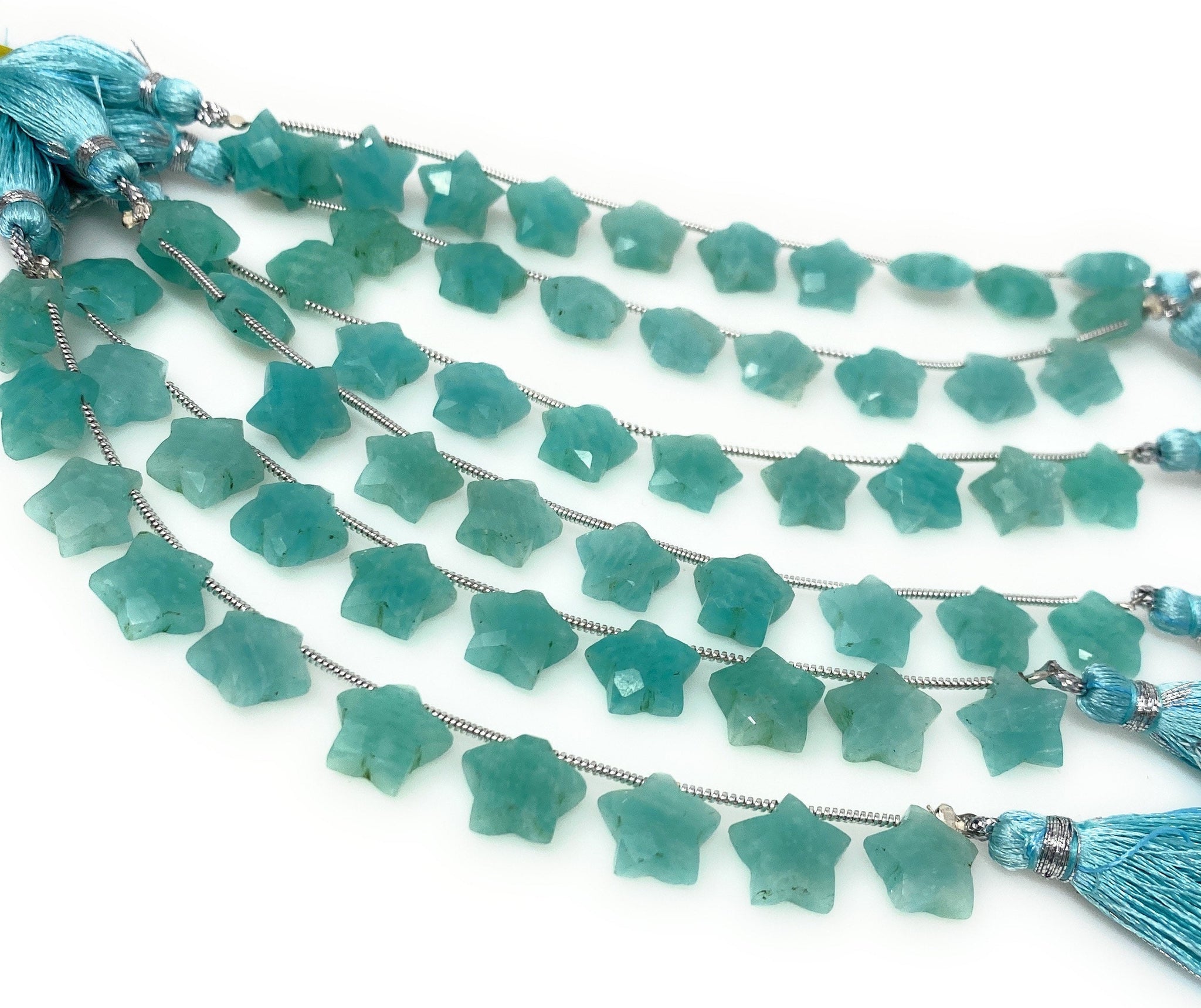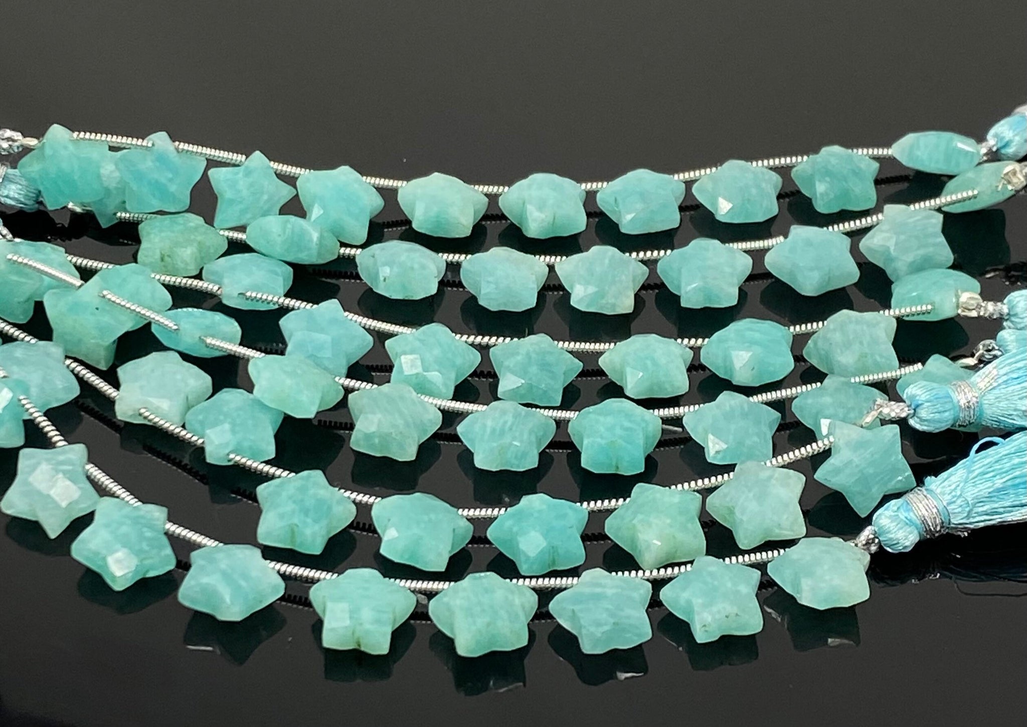 Natural Amazonite Gemstone Beads, Hand Carved Star Beads, Peruvian Amazonite Beads, Wholesale Bulk Beads, 5” Strand/ 10 Beads, 10.5mm