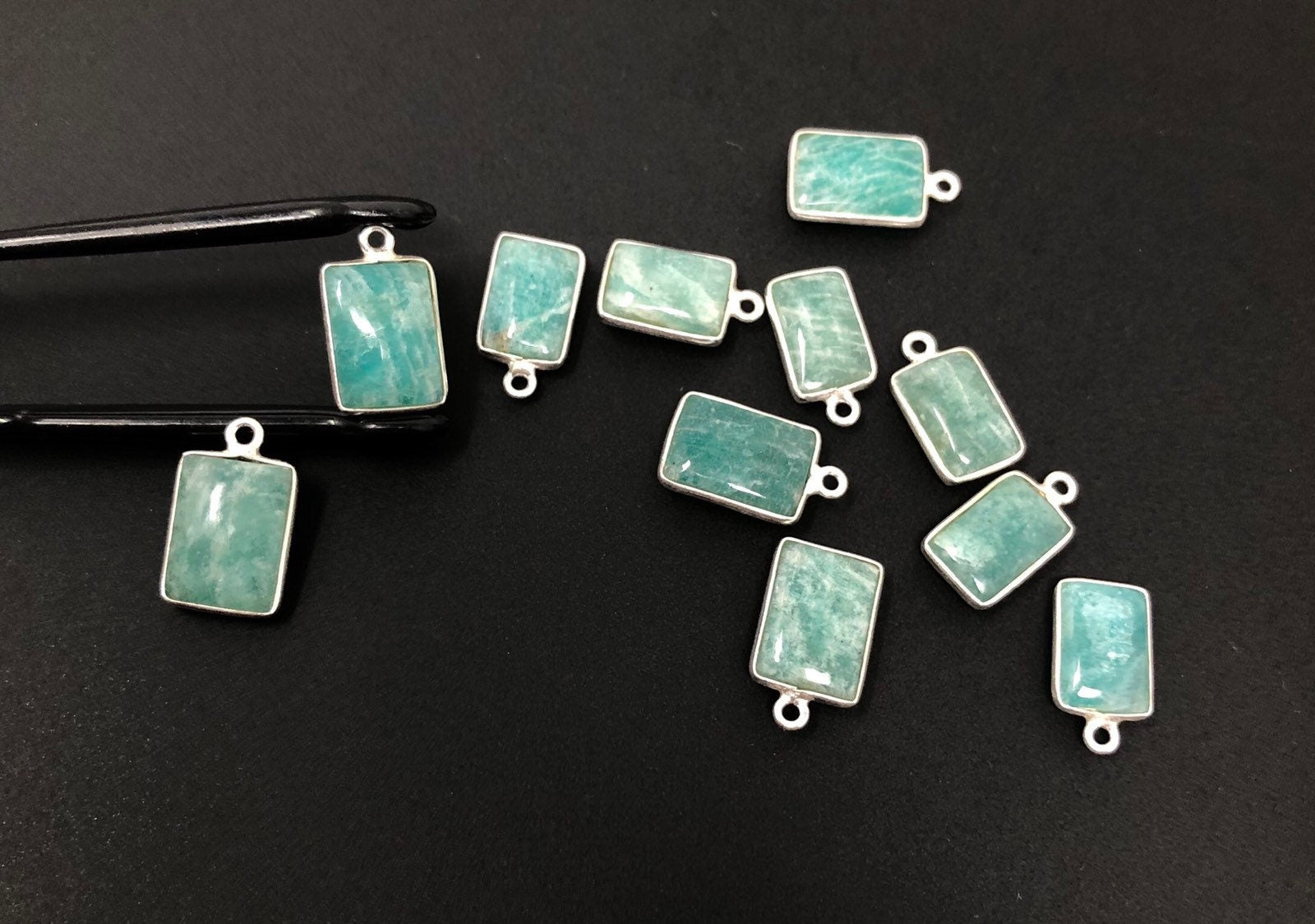 Sterling Silver Natural Gemstone Amazonite Bezel Set Double Sided Briolette Charm Jewelry Findings for Jewelry Making at Wholesale Price.