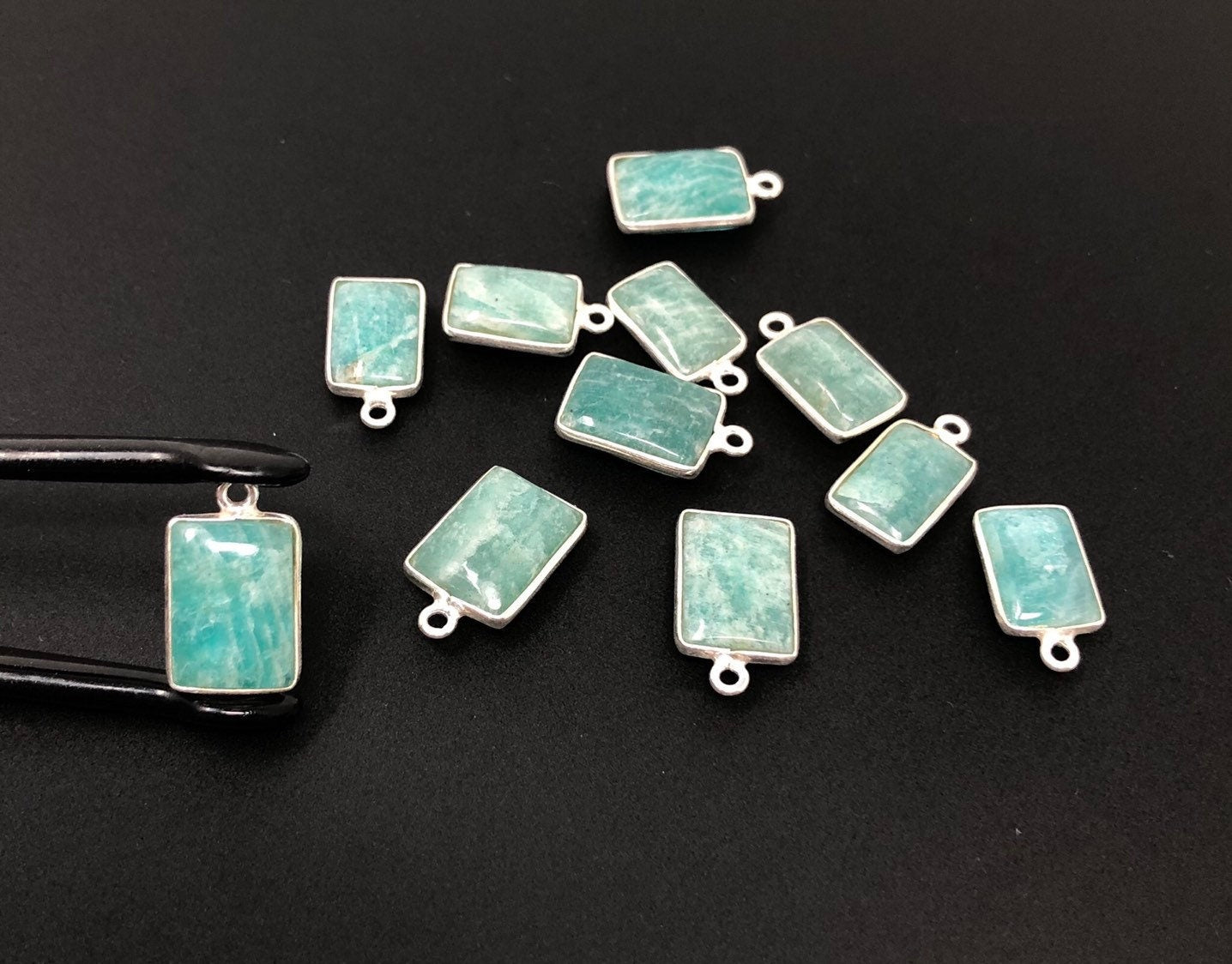 Natural Amazonite Gemstone Charms, Sterling Silver Charms, Jewelry Supplies for Jewelry Making, Wholesale Jewelry Findings, 1 Pc