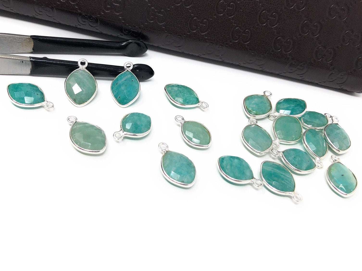 Natural Amazonite Gemstone Charms, Sterling Silver Charms, Jewelry Supplies for Jewelry Making, Wholesale Jewelry Findings, 1 Pc