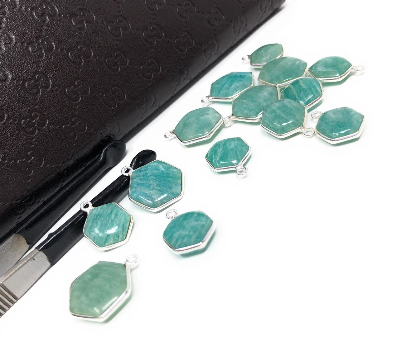 Natural Amazonite Gemstone Charms, Sterling Silver Charms, Jewelry Supplies for Jewelry Making, Wholesale Jewelry Findings, 1 Pc