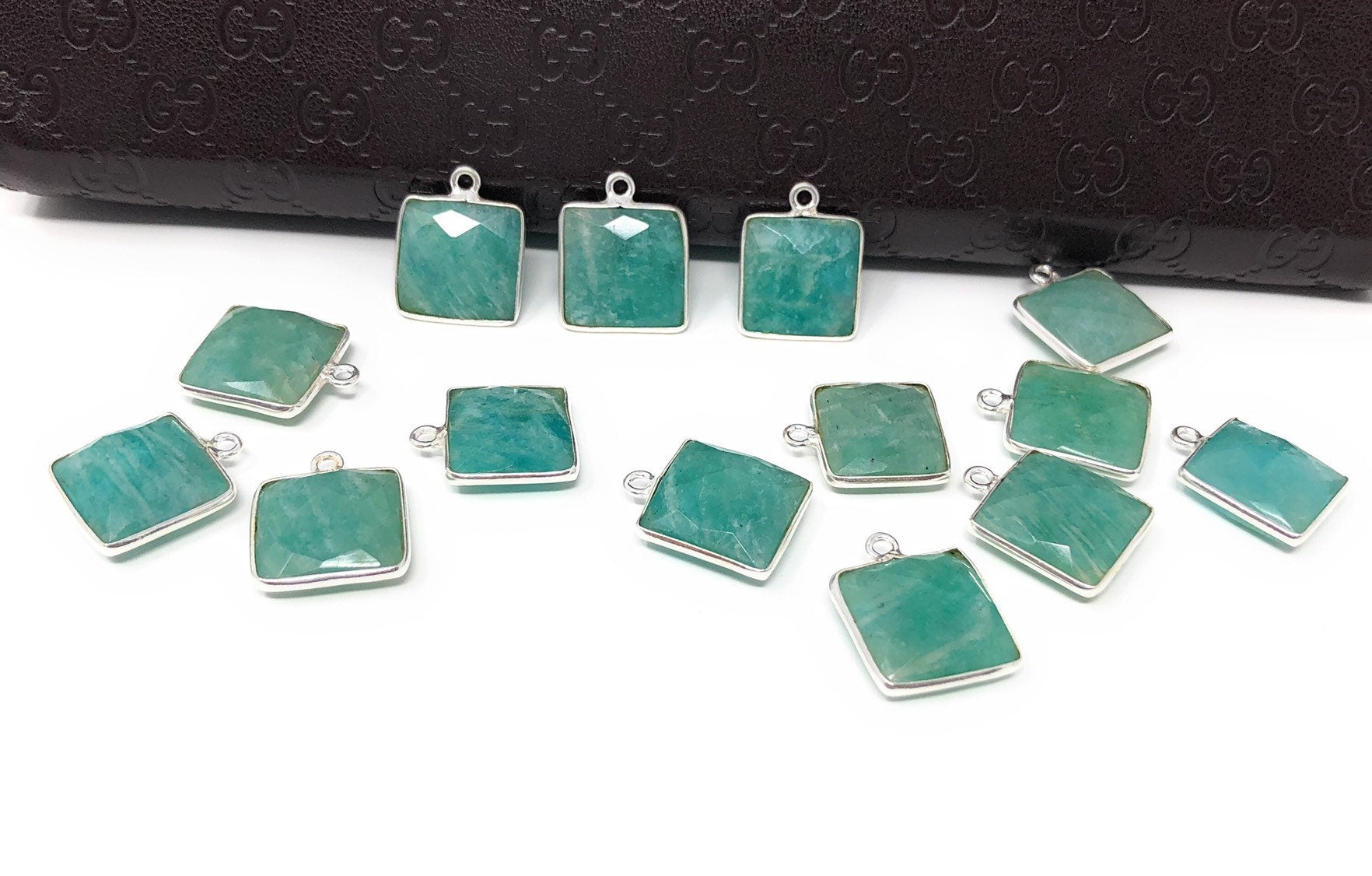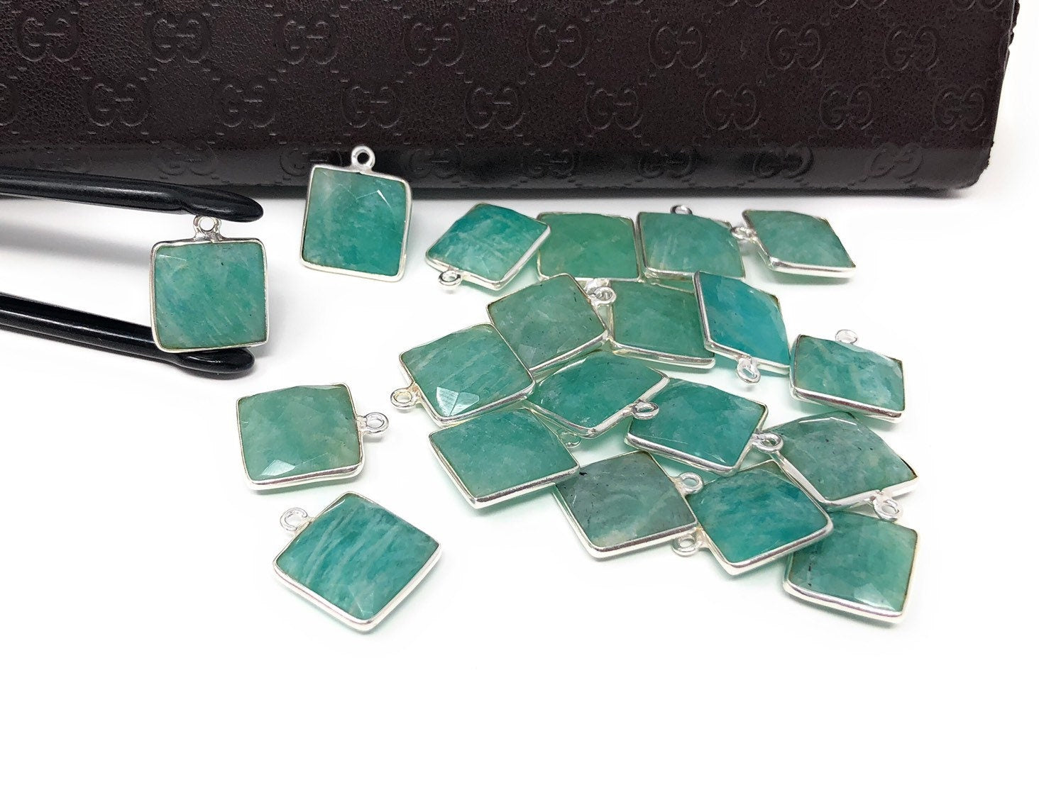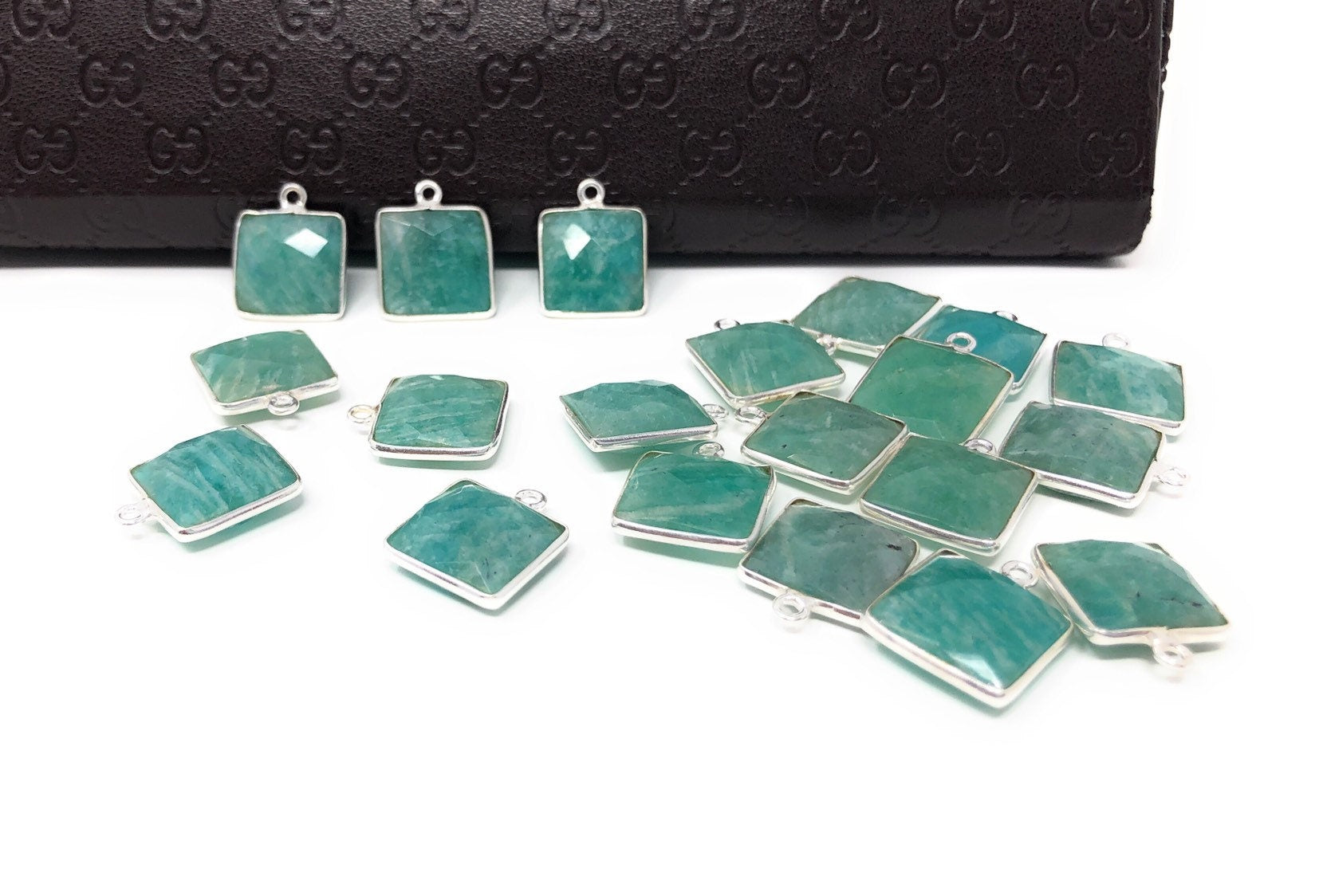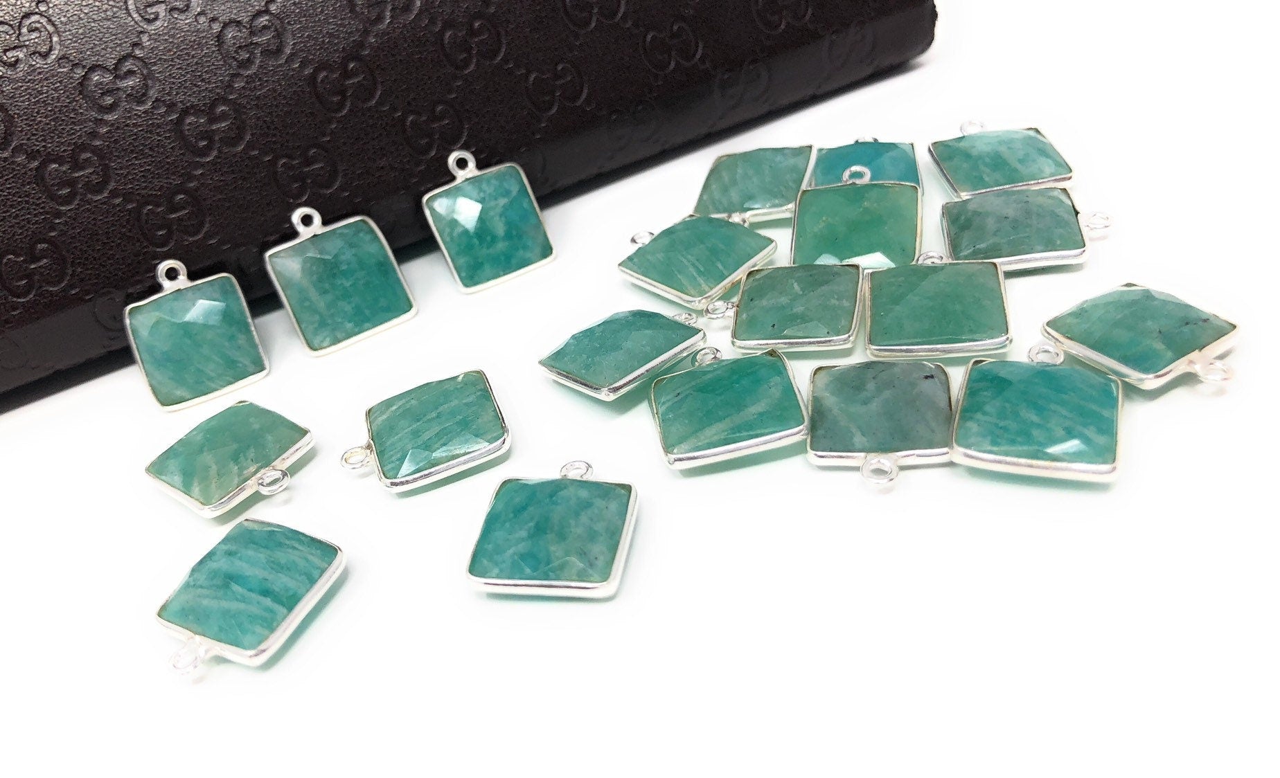 Sterling Silver Natural Gemstone Amazonite Bezel Set Double Sided Briolette Charm Jewelry Findings for Jewelry Making at Wholesale Price.
