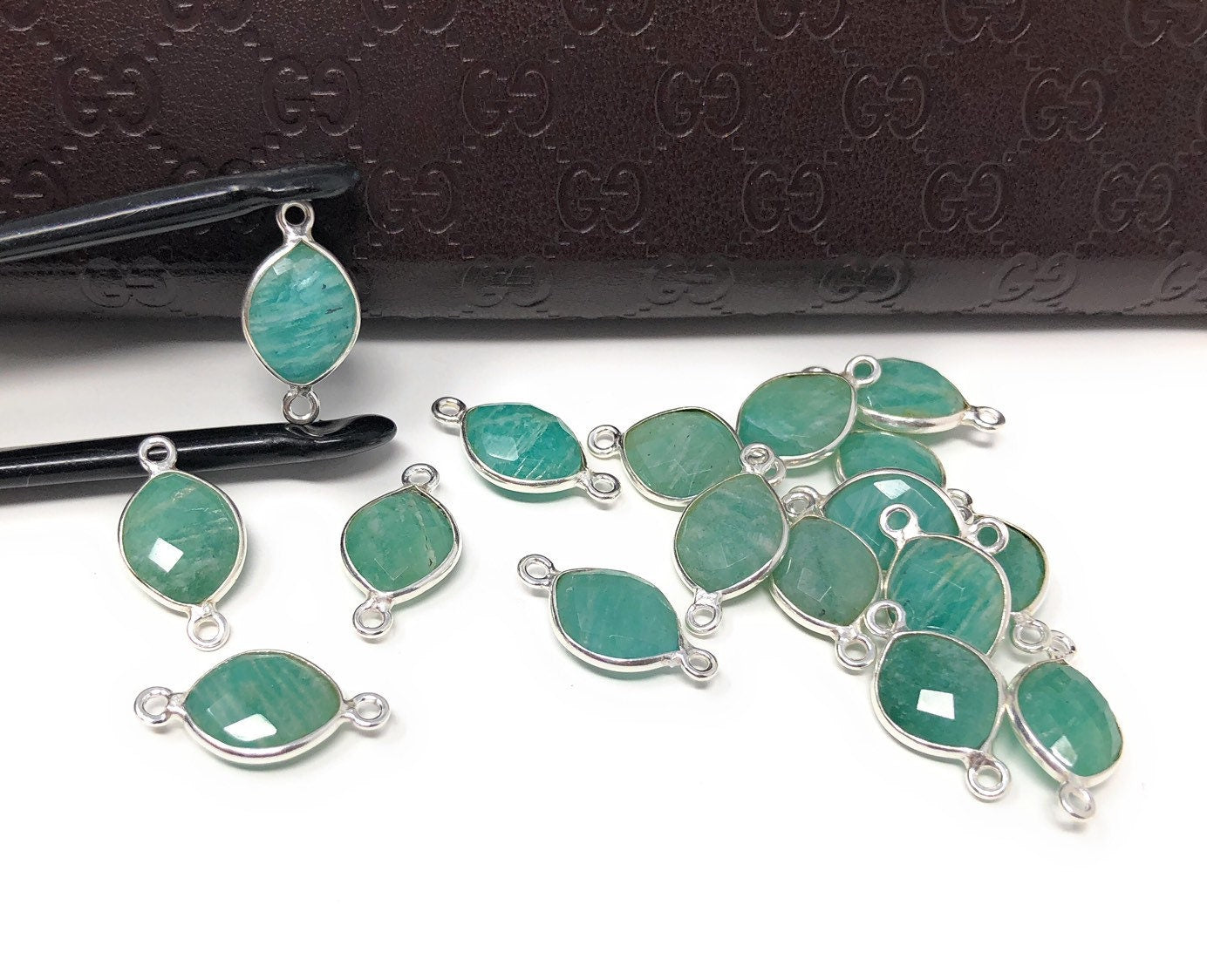 Sterling Silver Natural Gemstone Amazonite Bezel Set Double Sided Briolette Connector Jewelry Findings for Jewelry Making at Wholesale Price.