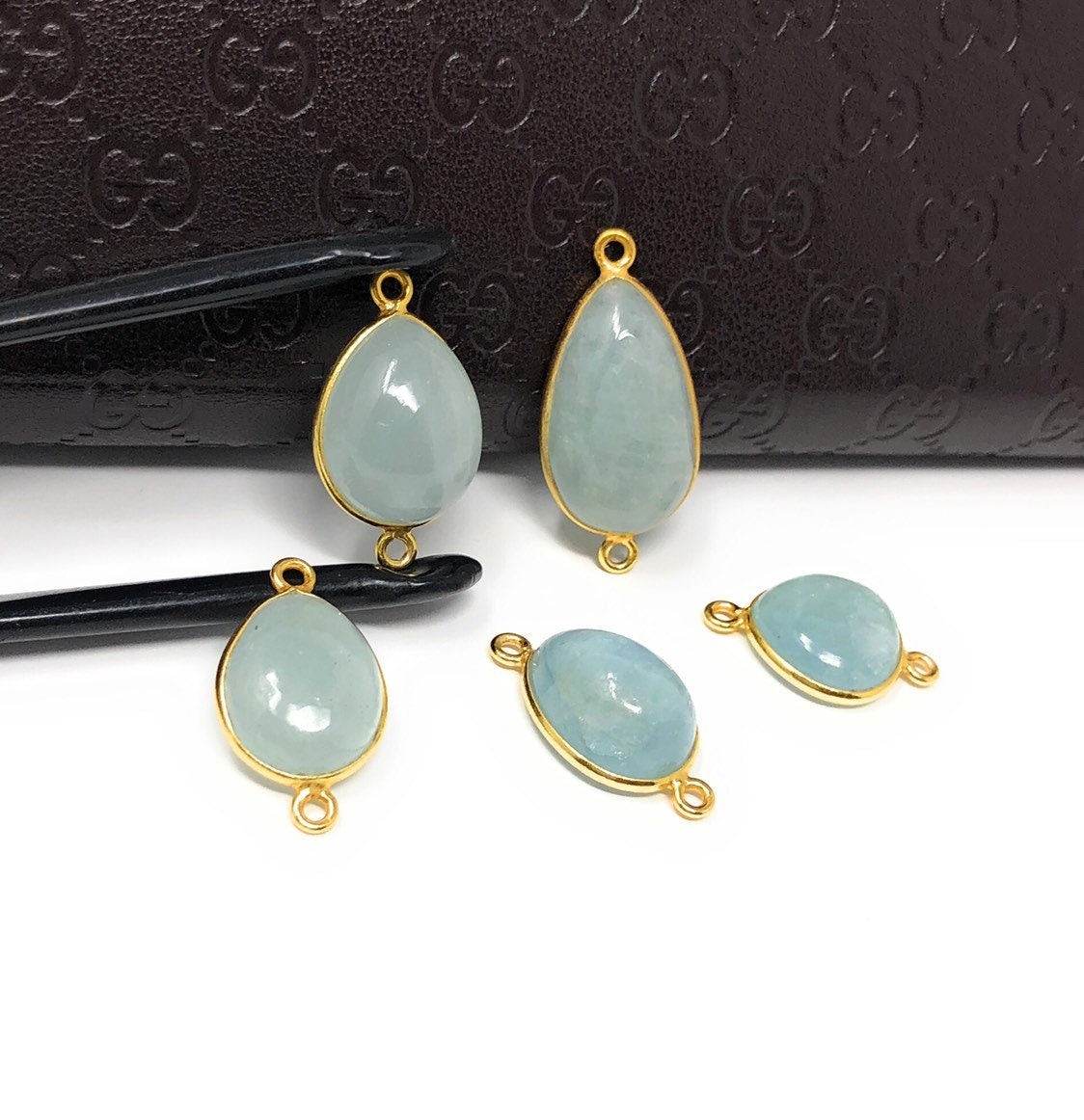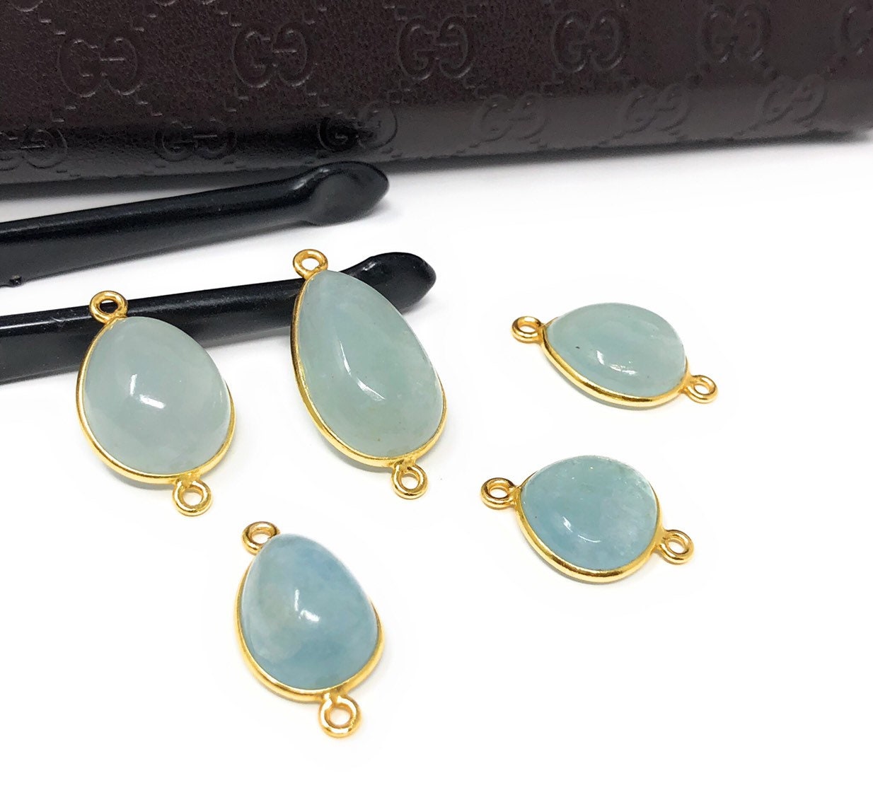 Natural Aquamarine Connectors, Gold Plated Sterling Silver Gemstone Connectors, Jewelry Findings, Jewelry Supplies for Jewelry Making, 1 pc