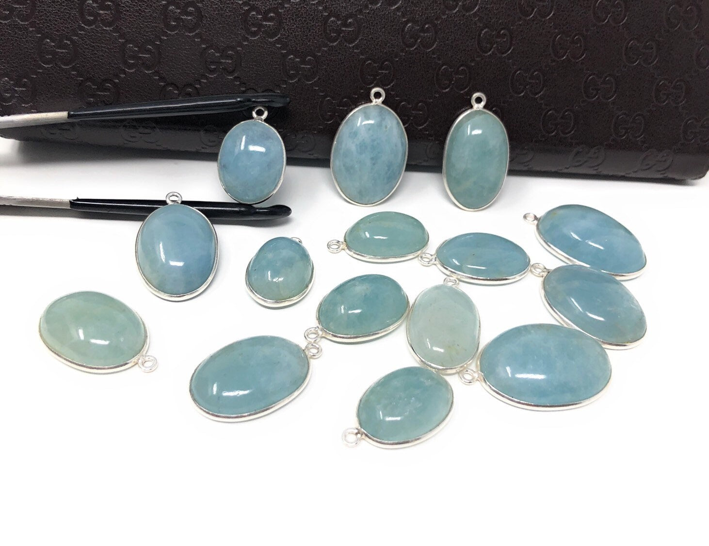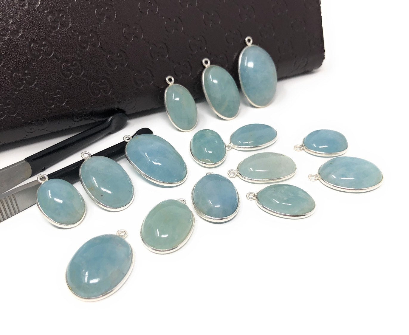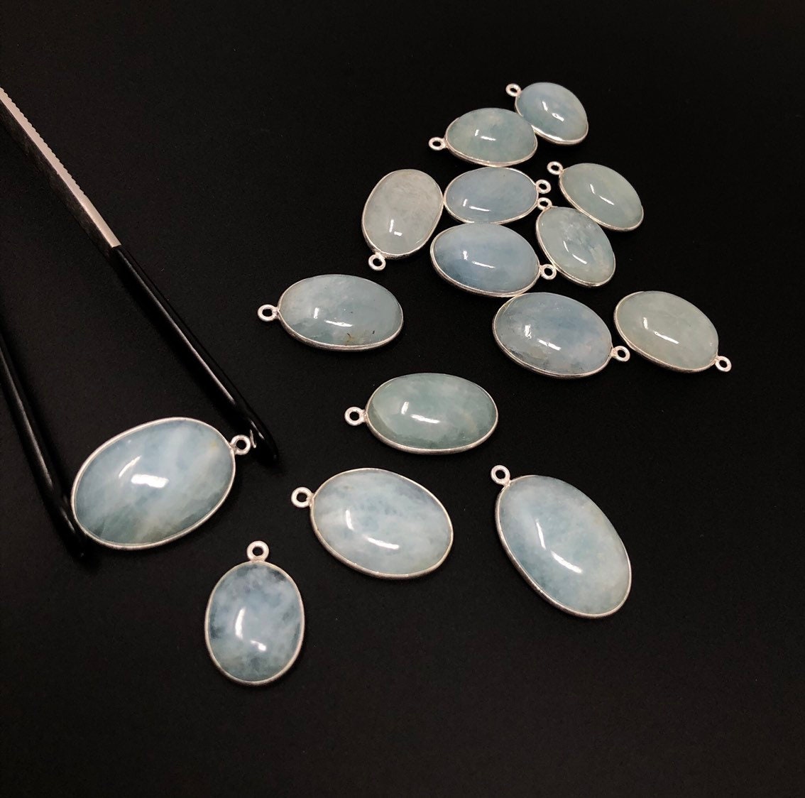 925 Sterling Silver Natural Gemstone Aquamarine Smooth Charms for Jewelry Making at Wholesale Price.