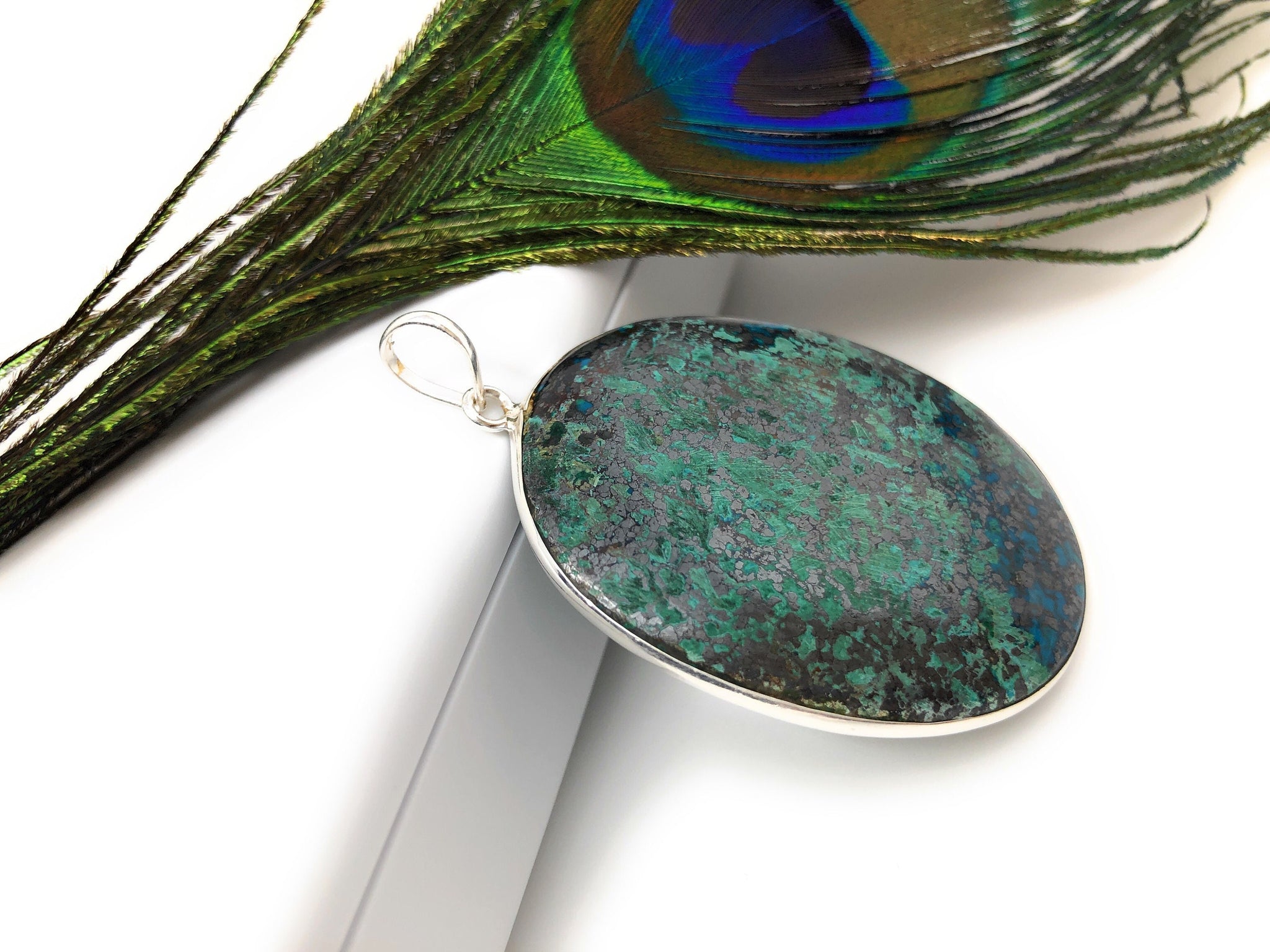 This beautiful Handmade AAA Grade Natural Azurite Malachite Oval Shape 925 Sterling Silver Large Pendant is an excellent choice for any occasion and makes a great gift for the loved ones.