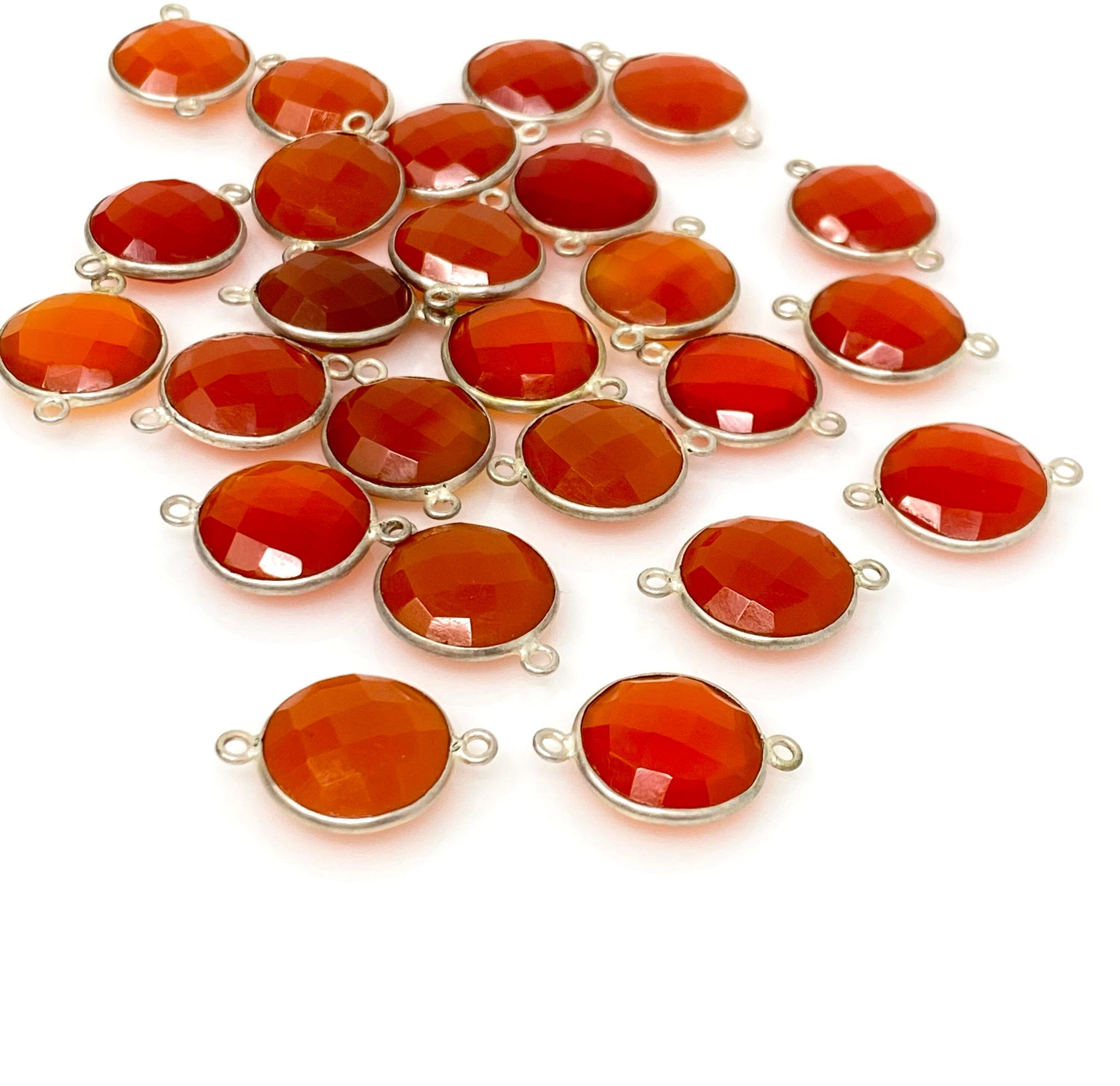 Silver Plated Natural Gemstone Carnelian Bezel Set Double Sided Briolette Connectors Jewelry Findings for Jewelry Making at Wholesale Price.