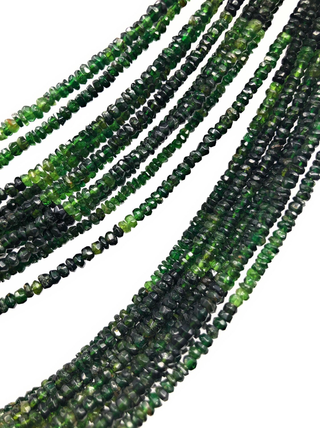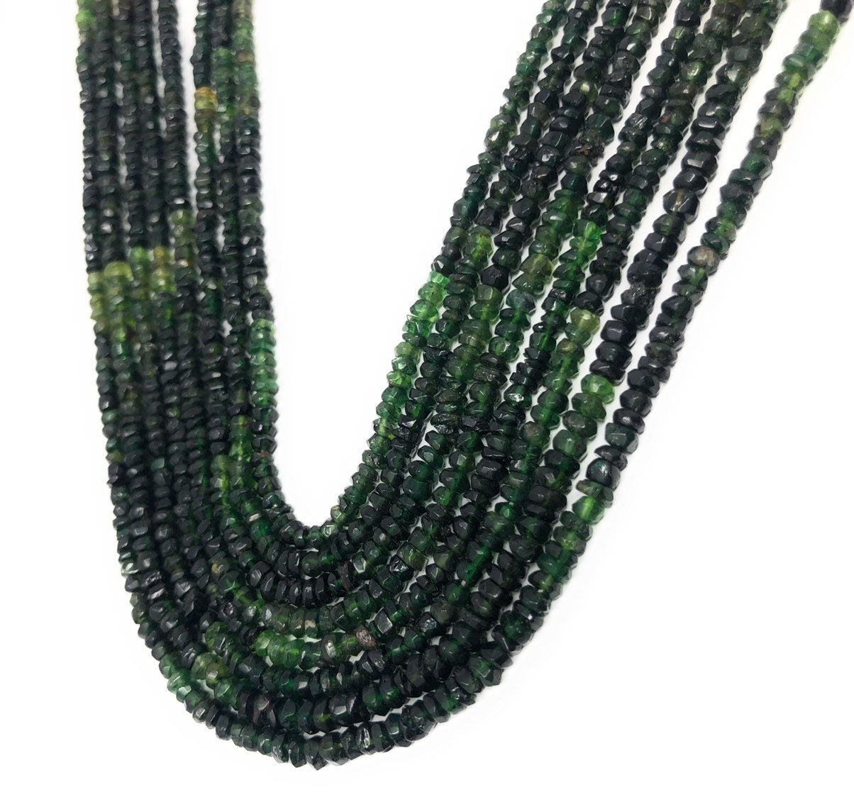 These Gorgeous Faceted Rondelle AA Grade Natural Untreated Shaded Chrome Diopside Gemstone Beads are an excellent choice for Stringing and making exclusive Bracelets or Necklaces .