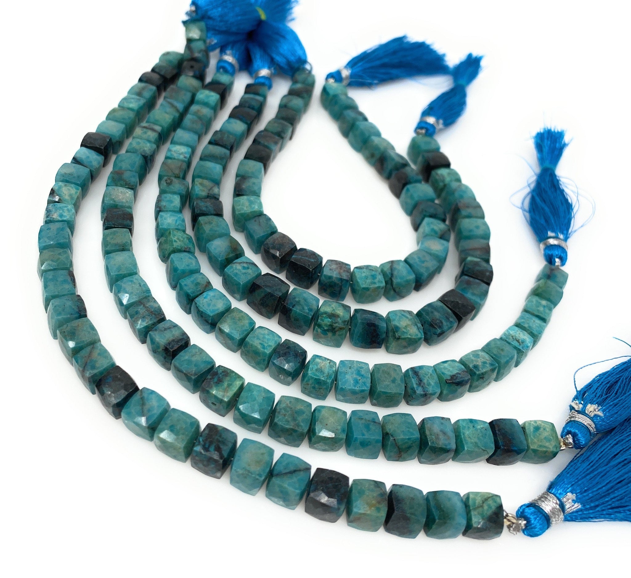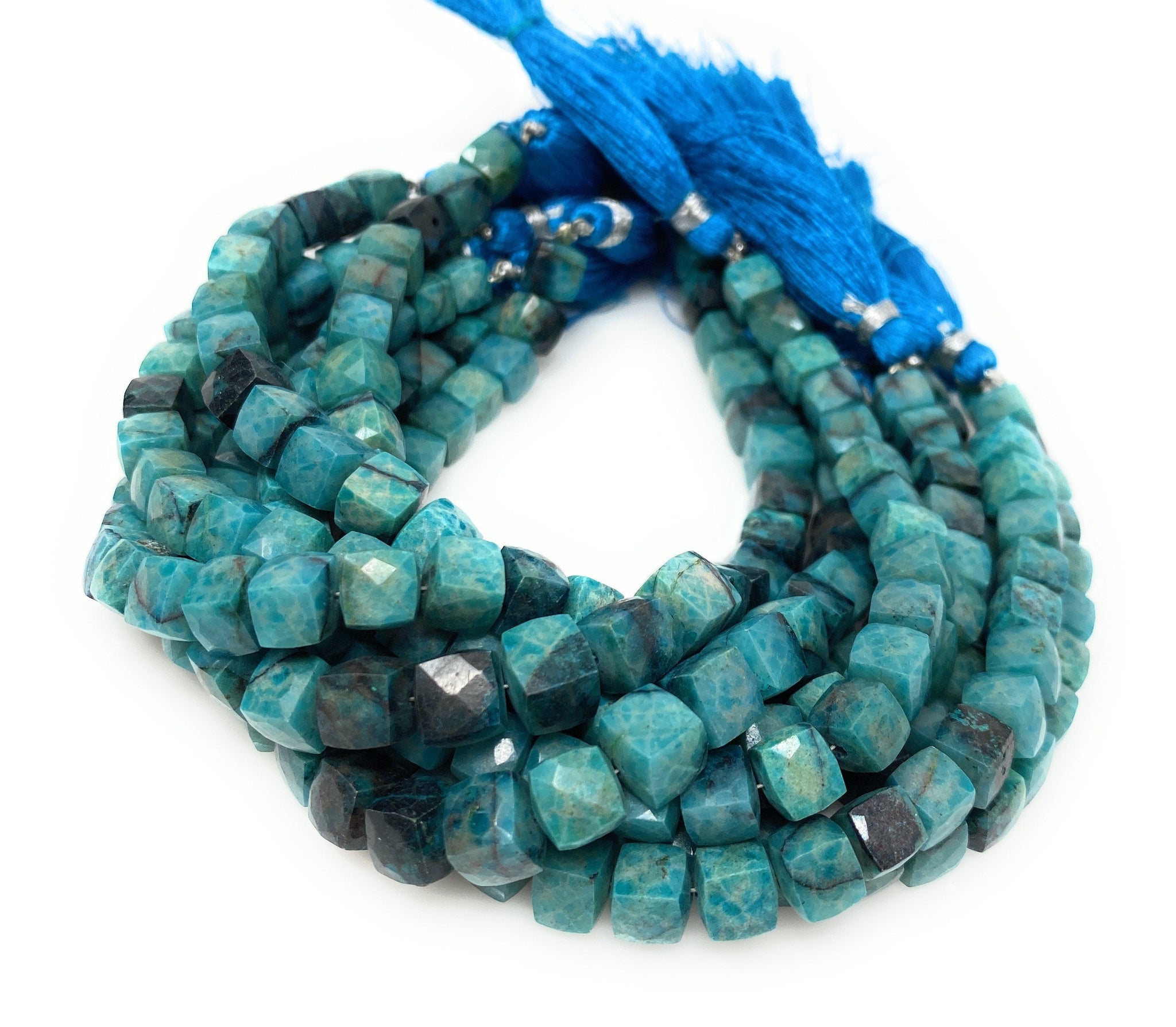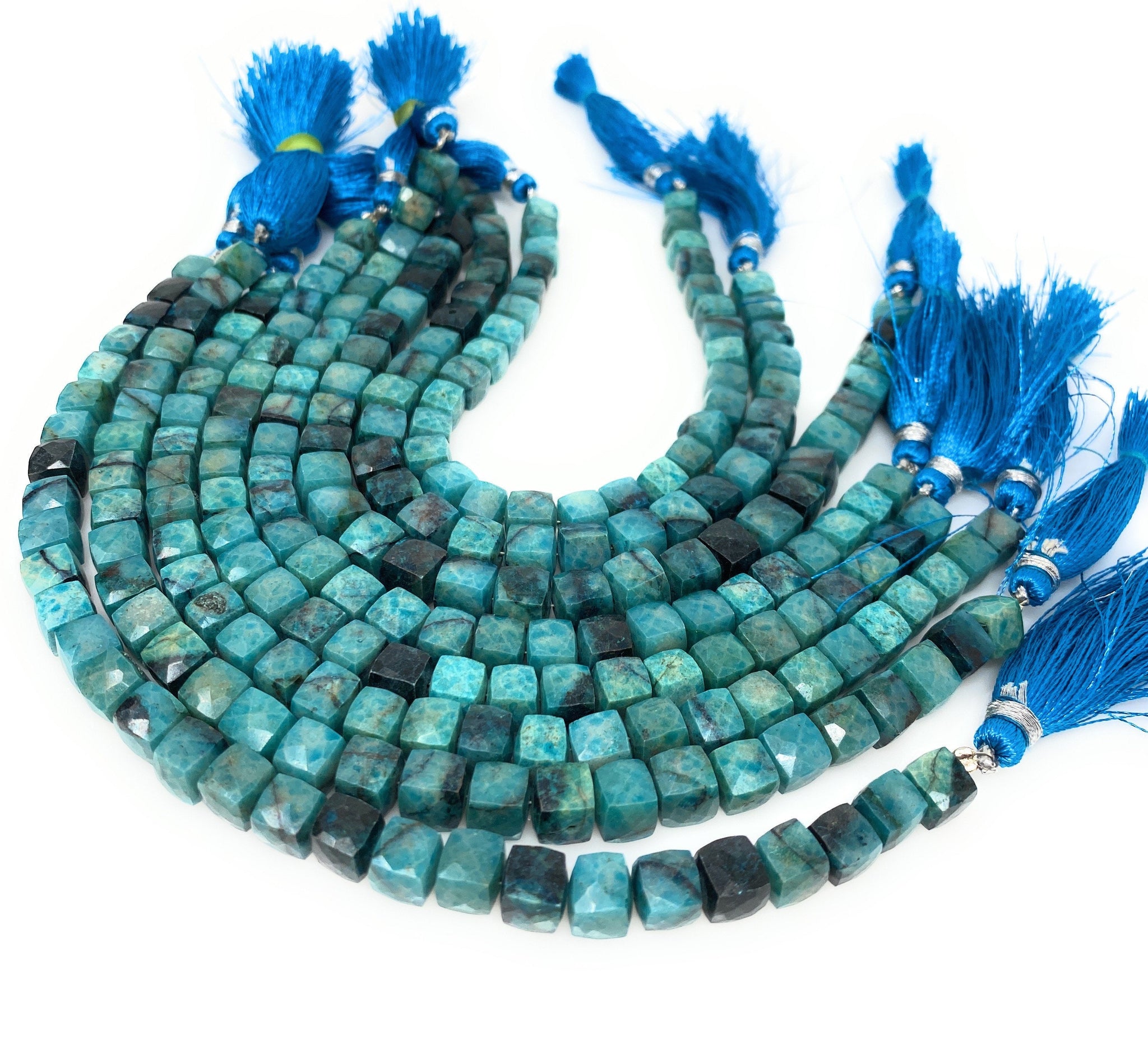 Natural Chrysocolla Gemstone Beads, Chrysocolla 3D Cube Box Beads, Wholesale Bulk Beads, Jewelry Supplies, 7mm -8mm, 8” strand