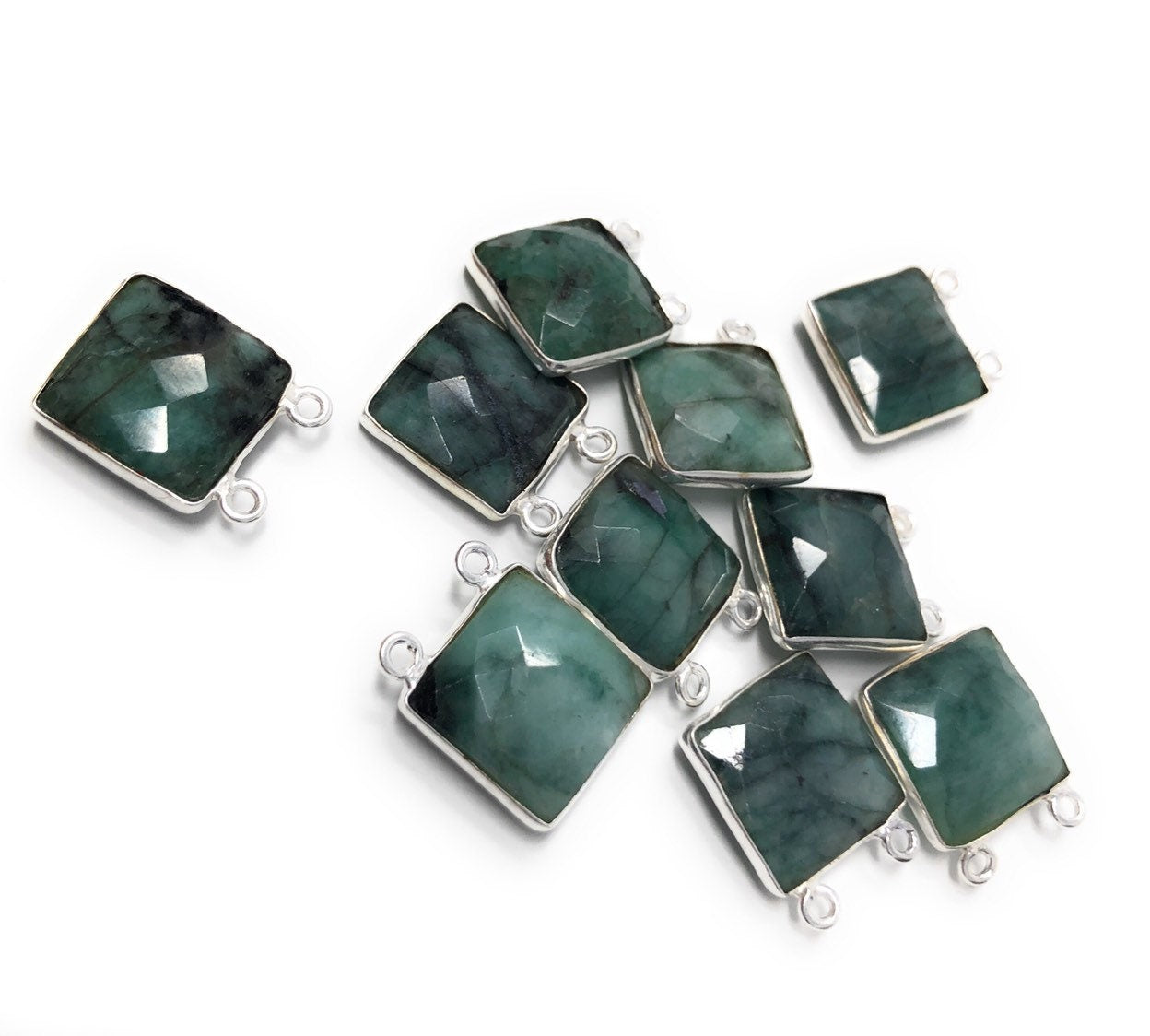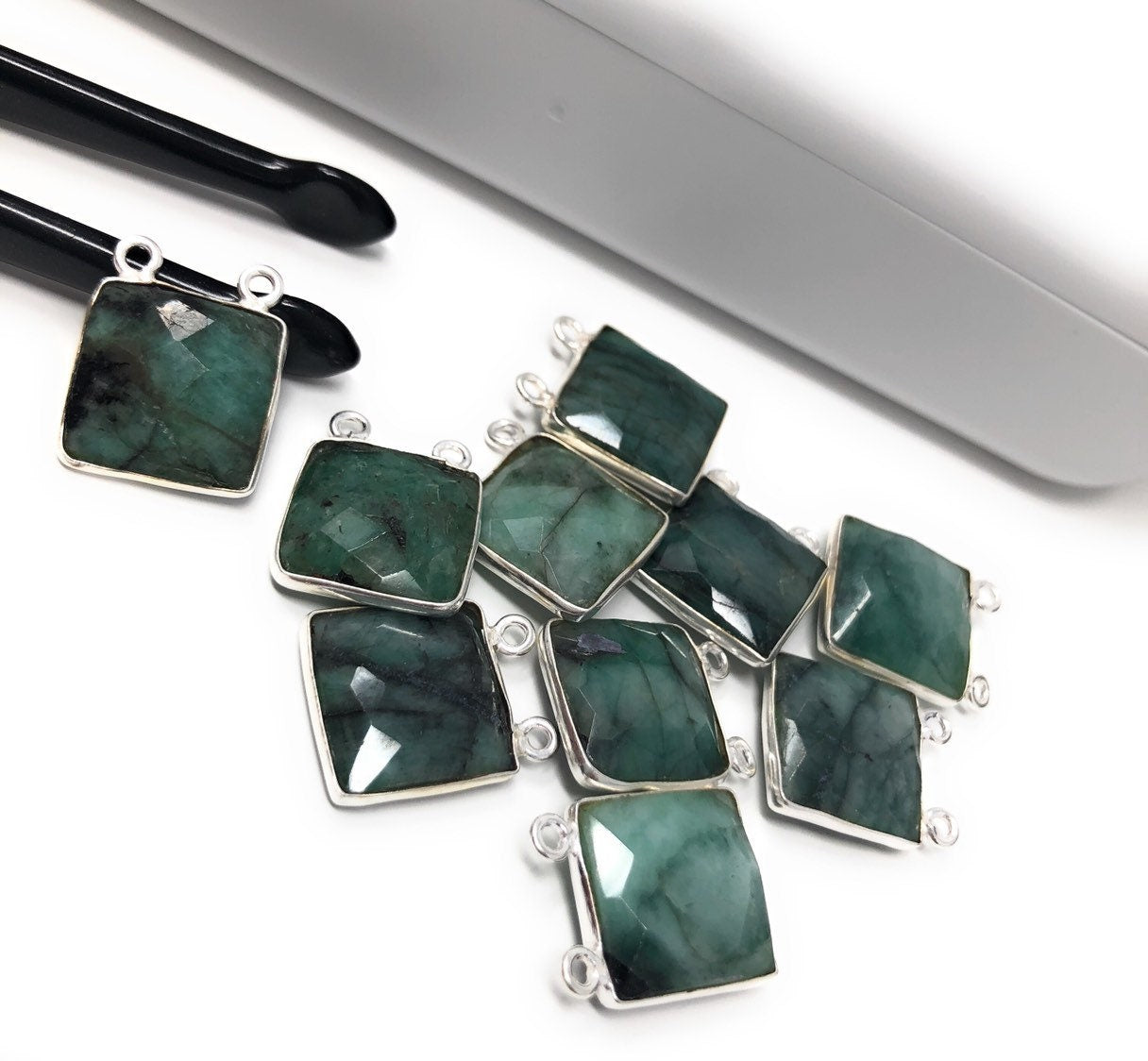 Natural Emerald Gemstone Connector, Sterling Silver Connectors, Wholesale Jewelry Findings for Jewelry Making, Jewelry Supplies, 17mm x 14mm