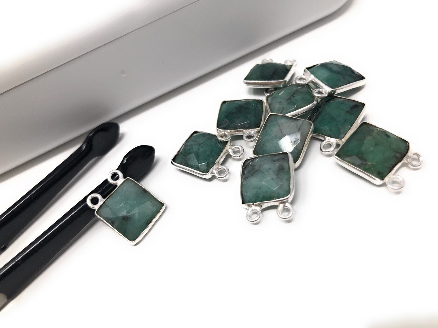 Natural Emerald Gemstone Connector, Sterling Silver Connectors, Jewelry Findings for Jewelry Making, Jewelry Supplies, 14x11mm - 15x11.5mm
