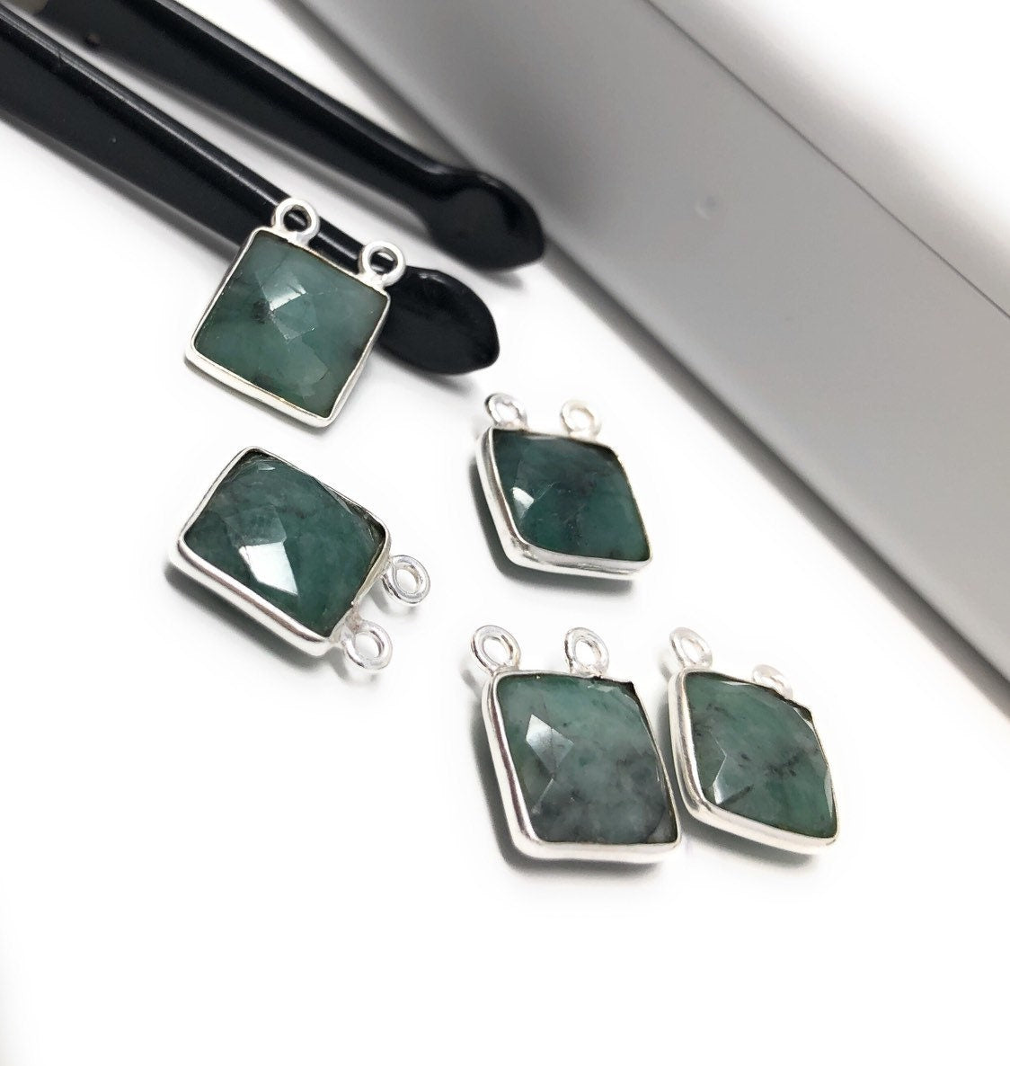 Sterling Silver Natural Emerald Gemstone Connectors Jewelry Findings for Jewelry Making at Wholesale Price.