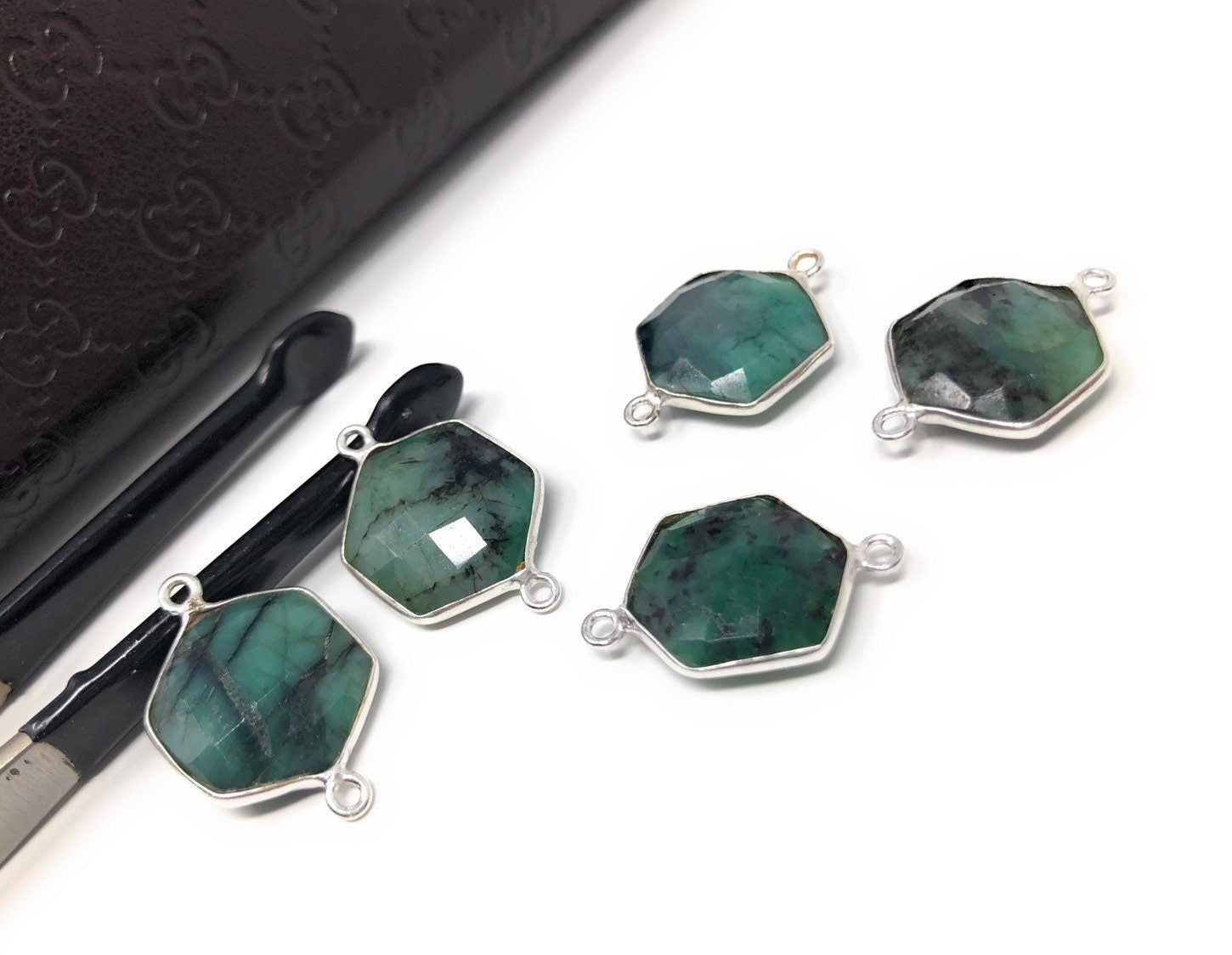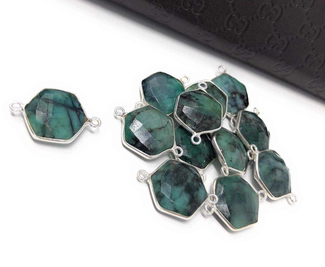 These beautiful Handmade Sterling Silver Natural Gemstone Sakota Emerald Double Bail Hexagon Shape Briolette Connector are an excellent choice for making any Jewelry Design. It can be used for making Anklet, Bracelet, Necklace or can be used for making exclusive Jewelry Piece. It can also be used to make Gemstone Belt.
