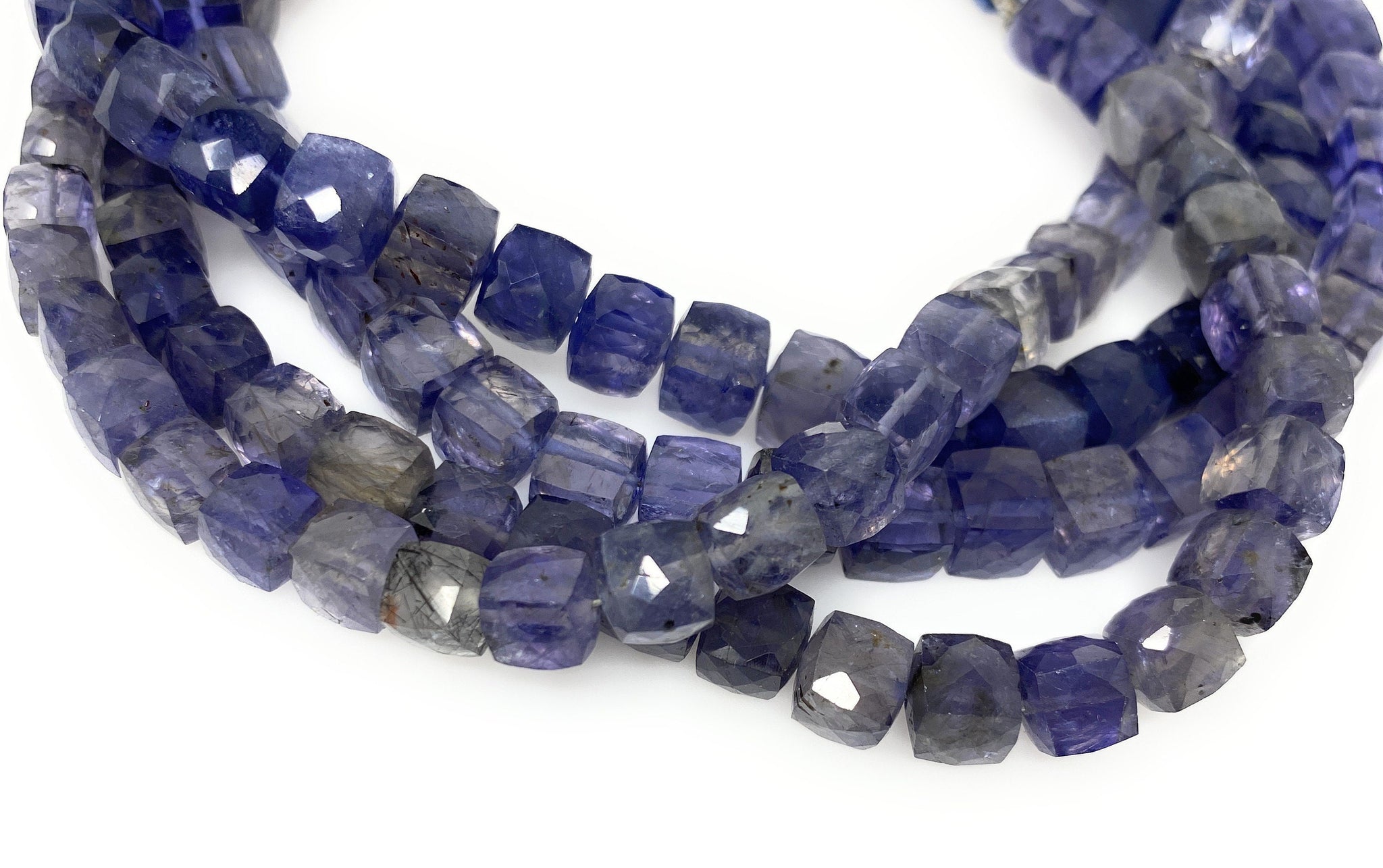 Natural Iolite Beads, Gemstone Beads, 3D Cube Box Beads, Wholesale Bulk Beads, 8" Strand