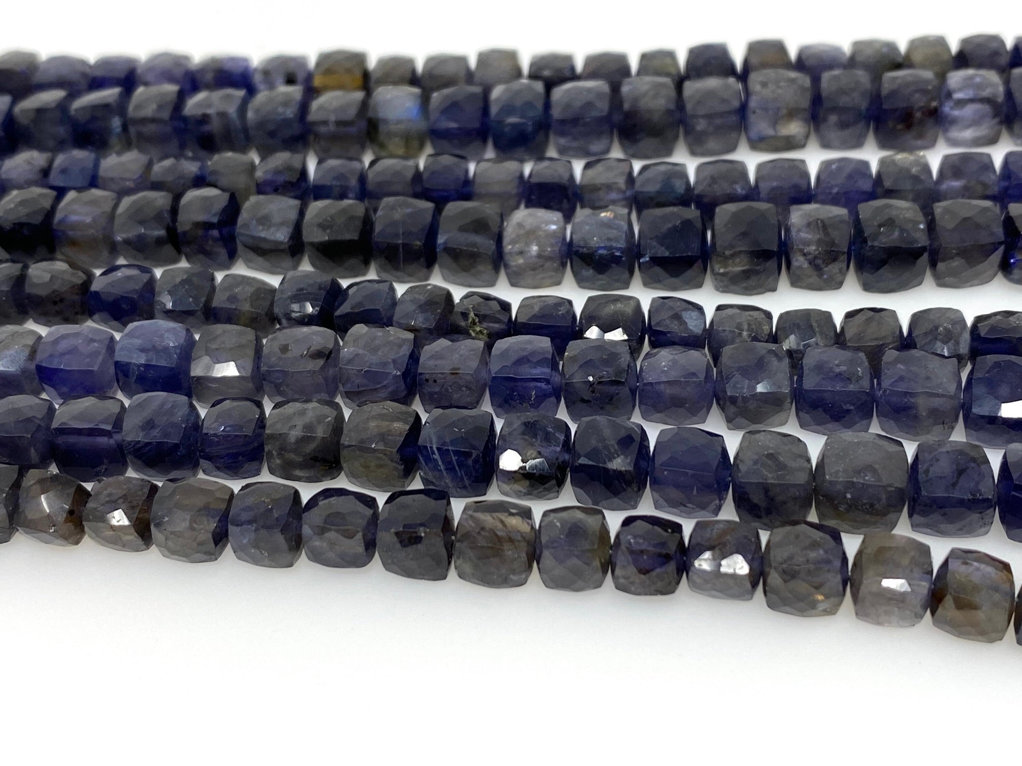 Natural Iolite Beads, Gemstone Beads, 3D Cube Box Beads, Wholesale Bulk Beads, 7.5" Strand