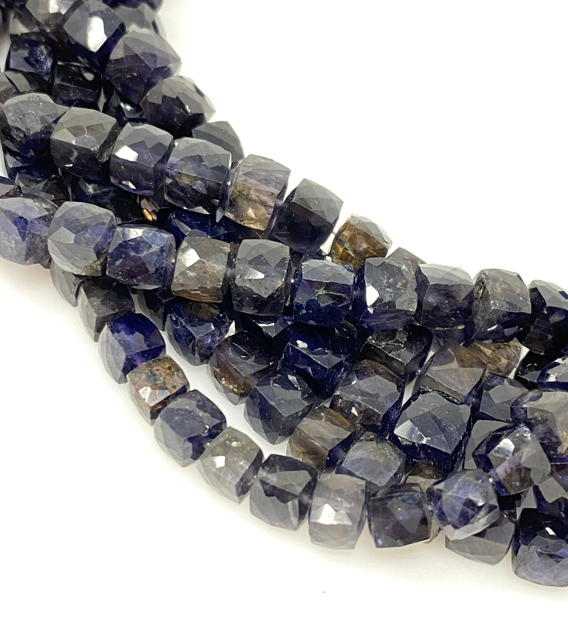 Natural Iolite Beads, Gemstone Beads, 3D Cube Box Beads, Wholesale Bulk Beads, 8" Strand