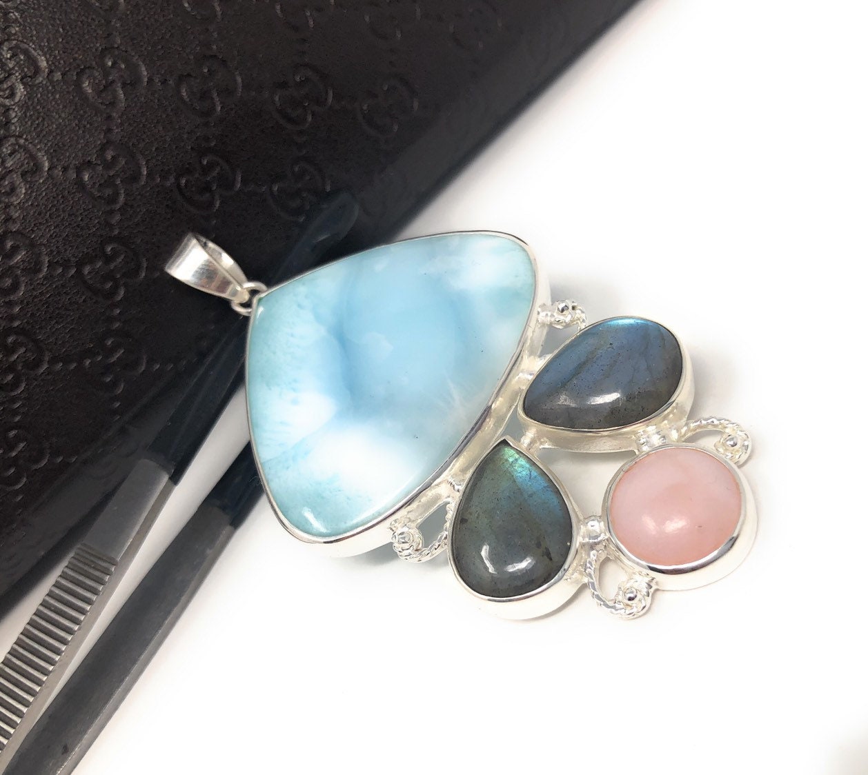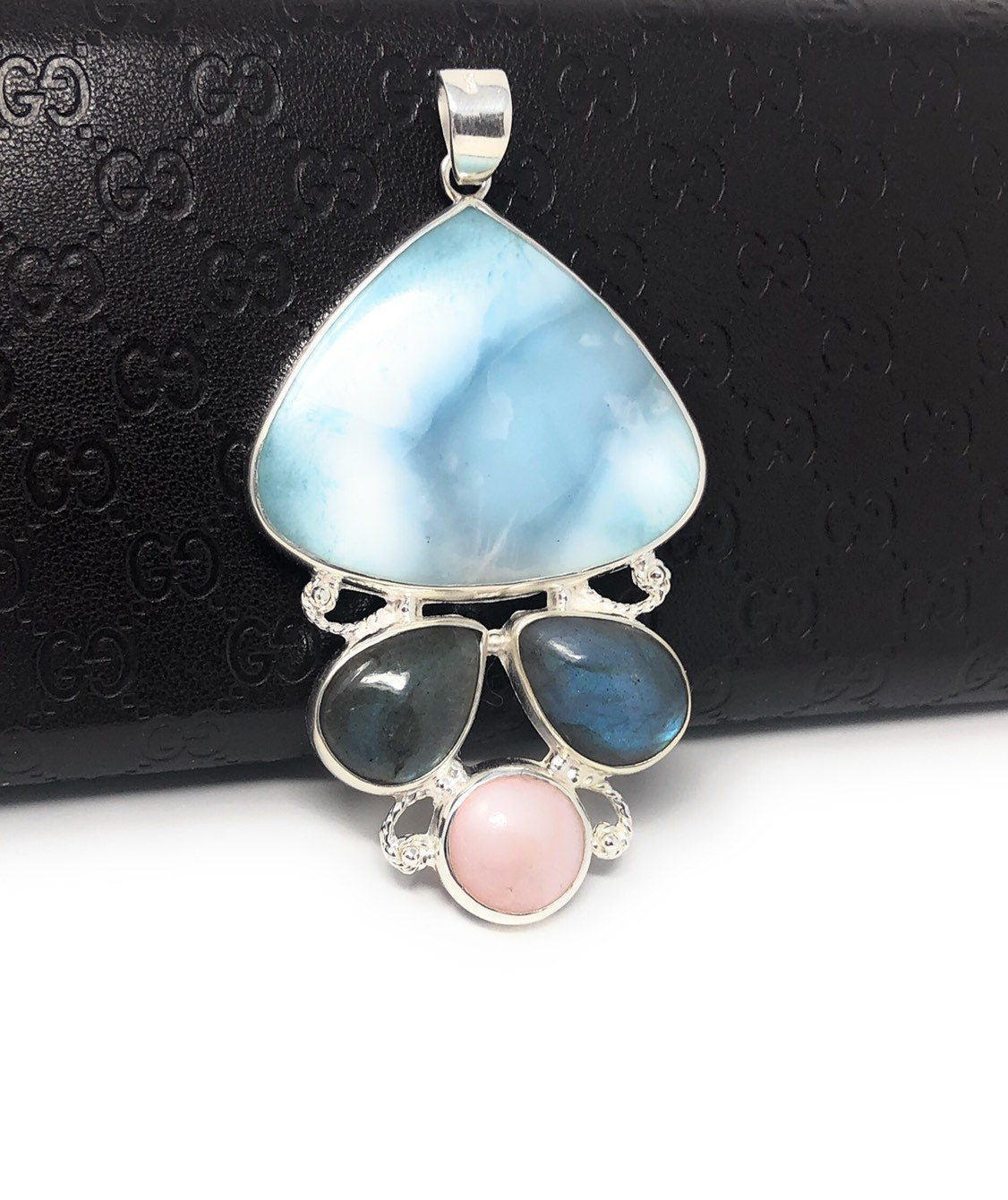 Labradorite, Larimar and Pink Opal Gemstone Sterling Silver Pendant Jewelry at Wholesale Price.