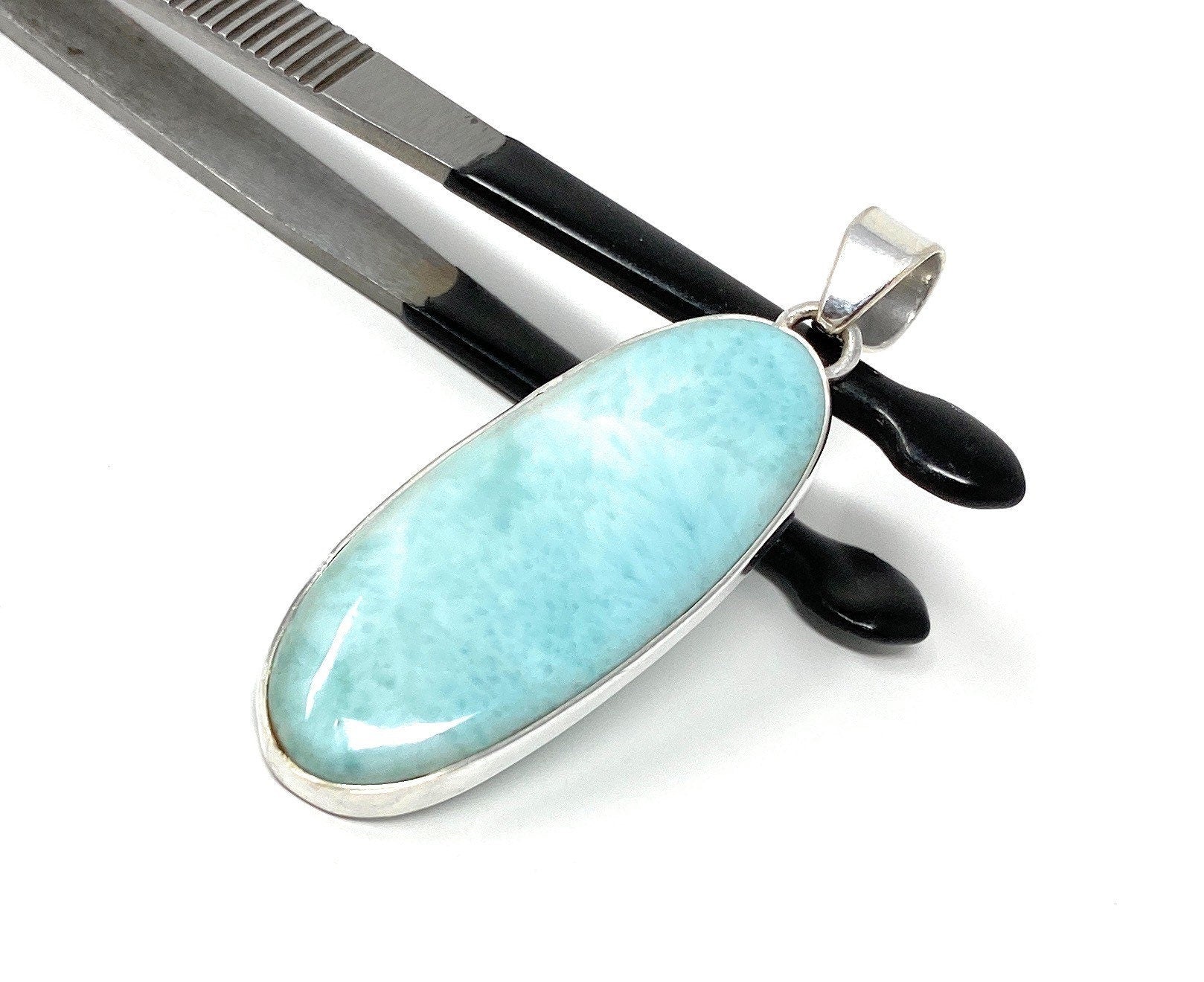 Natural Larimar Pendant, Sterling Silver Gemstone Jewelry, Wholesale DIY Pendants Jewelry Supplies, Gifts for Her, 57mm X 18.5mm