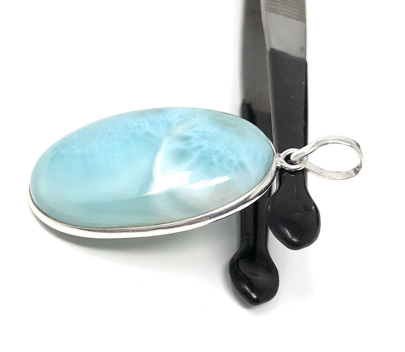 This beautiful Handmade AAA Grade Natural Larimar Gemstone Oval Shape 925 Sterling Silver Large Pendant is an excellent choice for any occasion and makes a great gift for the loved ones.