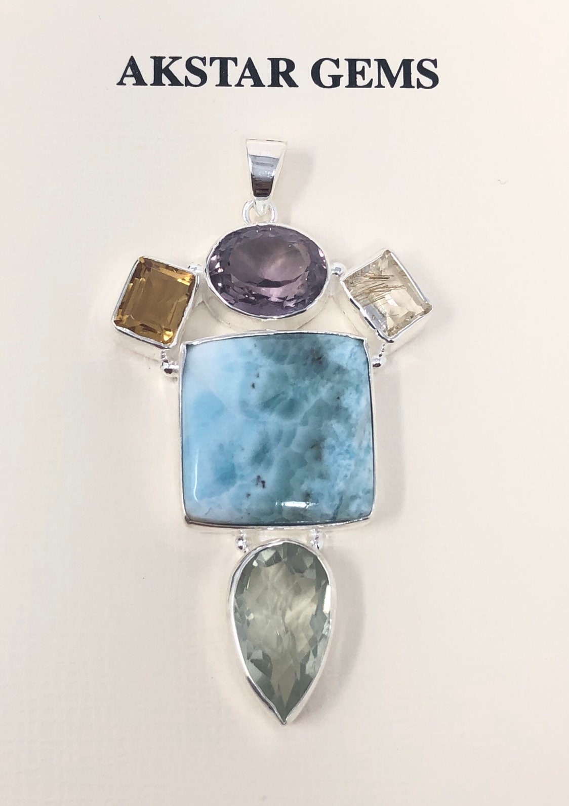 Natural Larimar, Amethyst, Prasiolite Green Amethyst, Citrine and Golden Rutile Gemstone Sterling Silver Pendant DIY Jewelry at Wholesale Price.