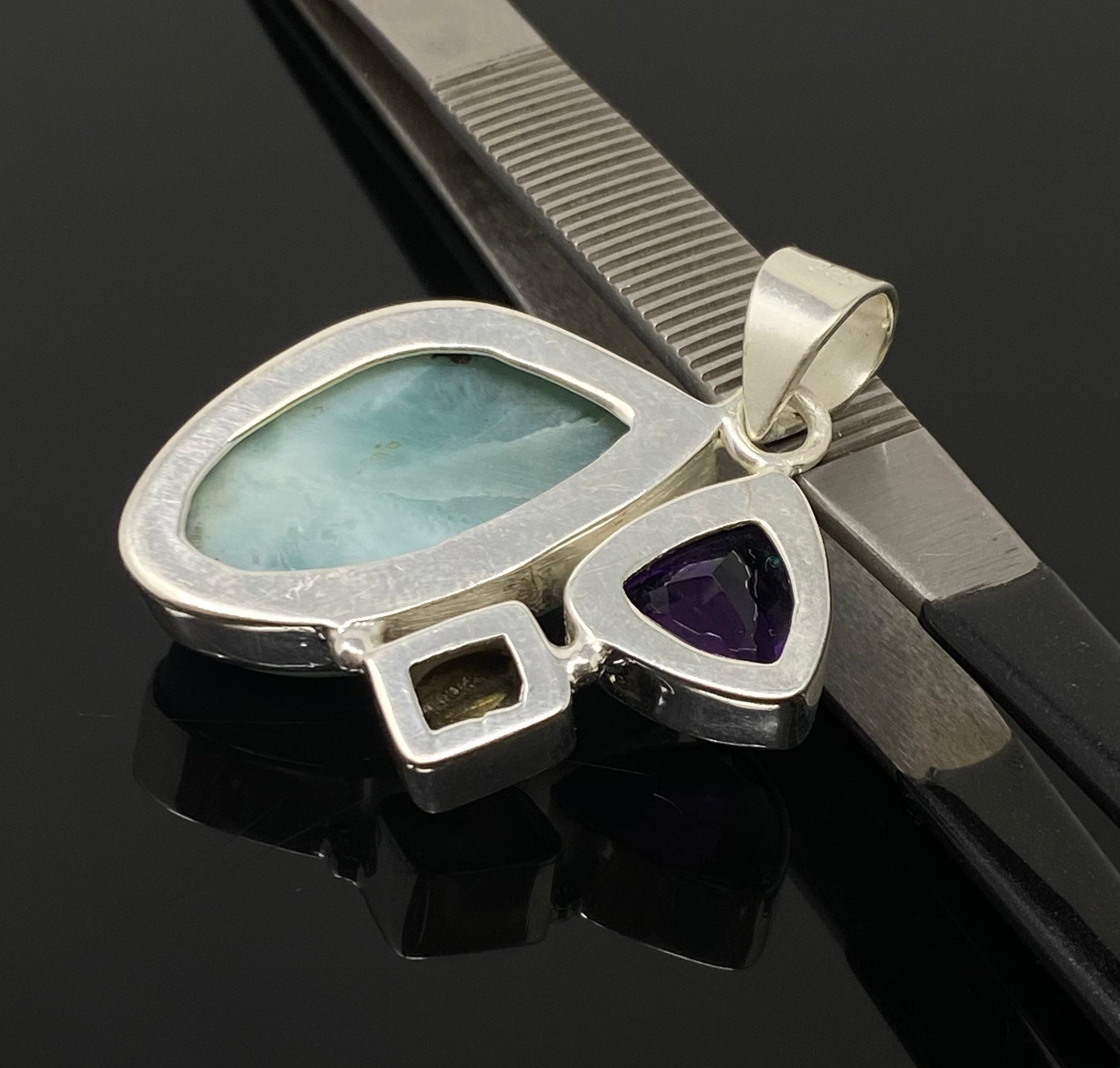 Natural Larimar with Amethyst and Citrine Gemstone Pendant, Sterling Silver Jewelry, Larimar Pendant, Amethyst Pendant, Bohemian Jewelry