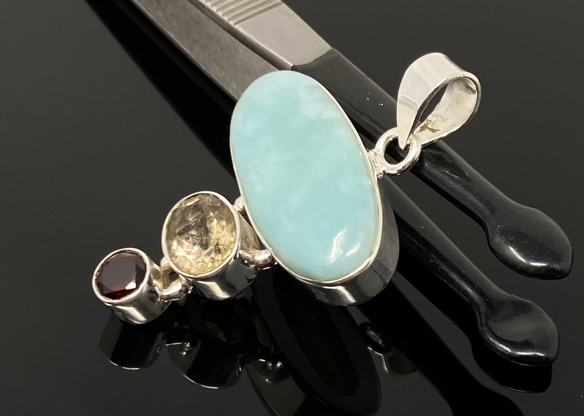 Natural Larimar, Garnet, and Yellow Rutile Gemstone Sterling Silver Pendant DIY Jewelry at Wholesale Price.