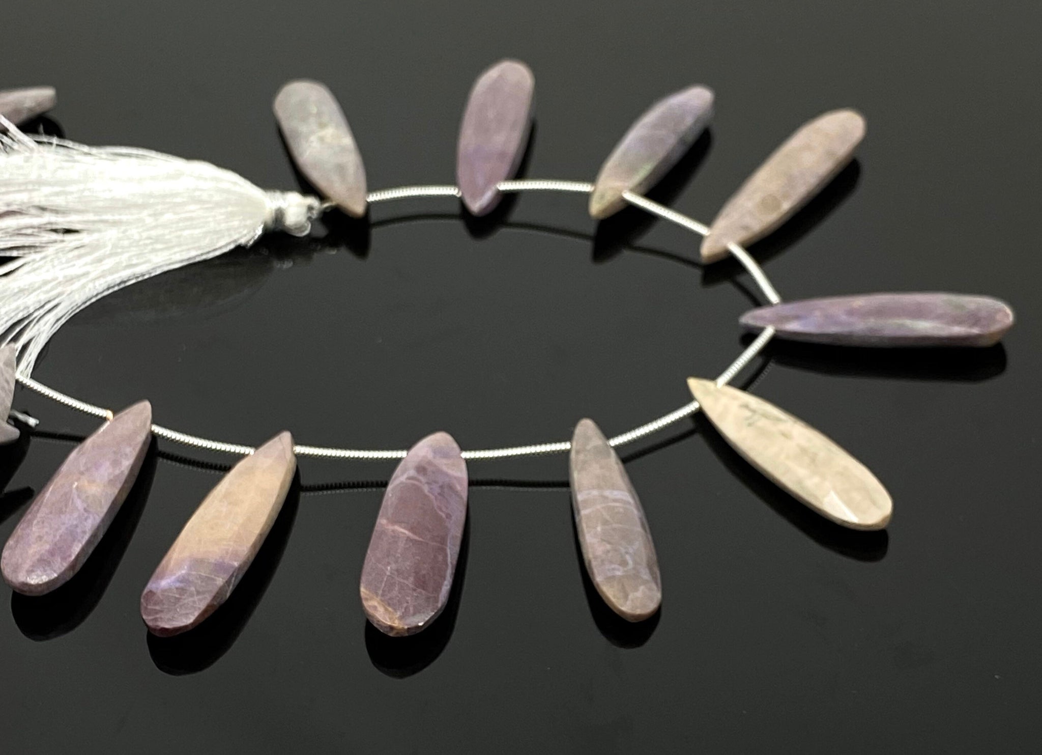 Natural Lepidolite Gemstone Beads, Lepidolite Faceted Pear Beads, Jewelry Supplies, Wholesale Beads, Bulk Beads, 8" Strand/ 13 Pcs