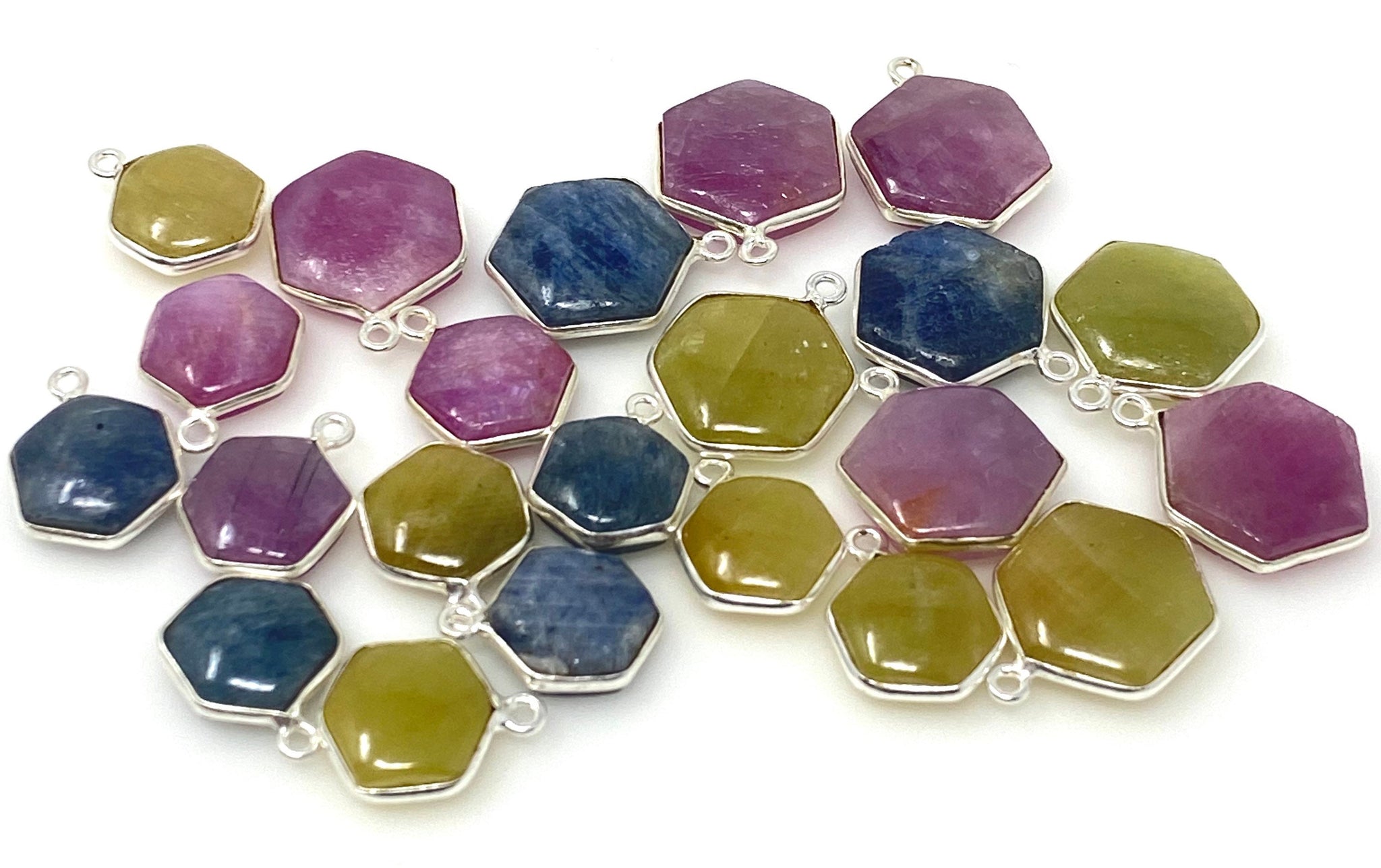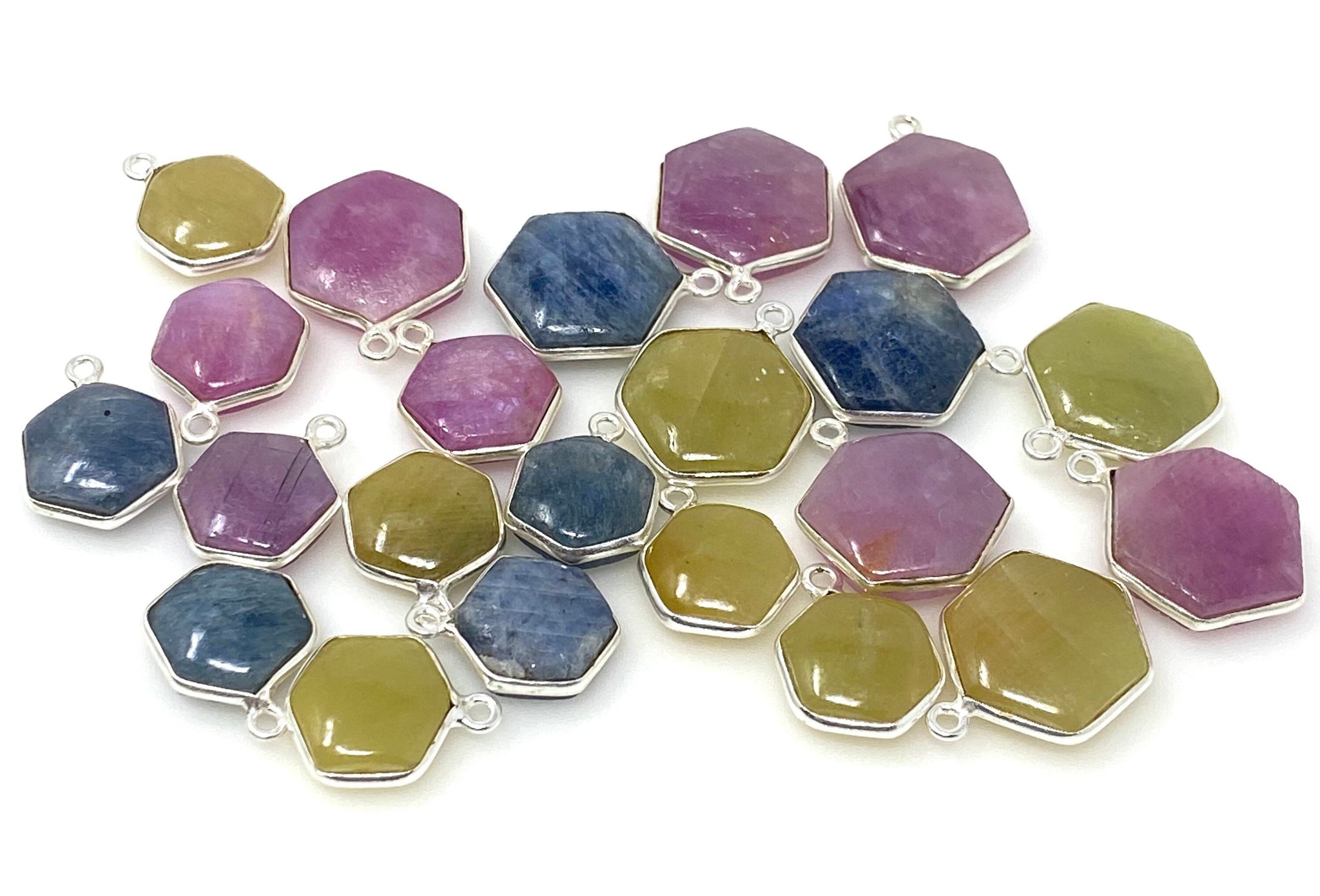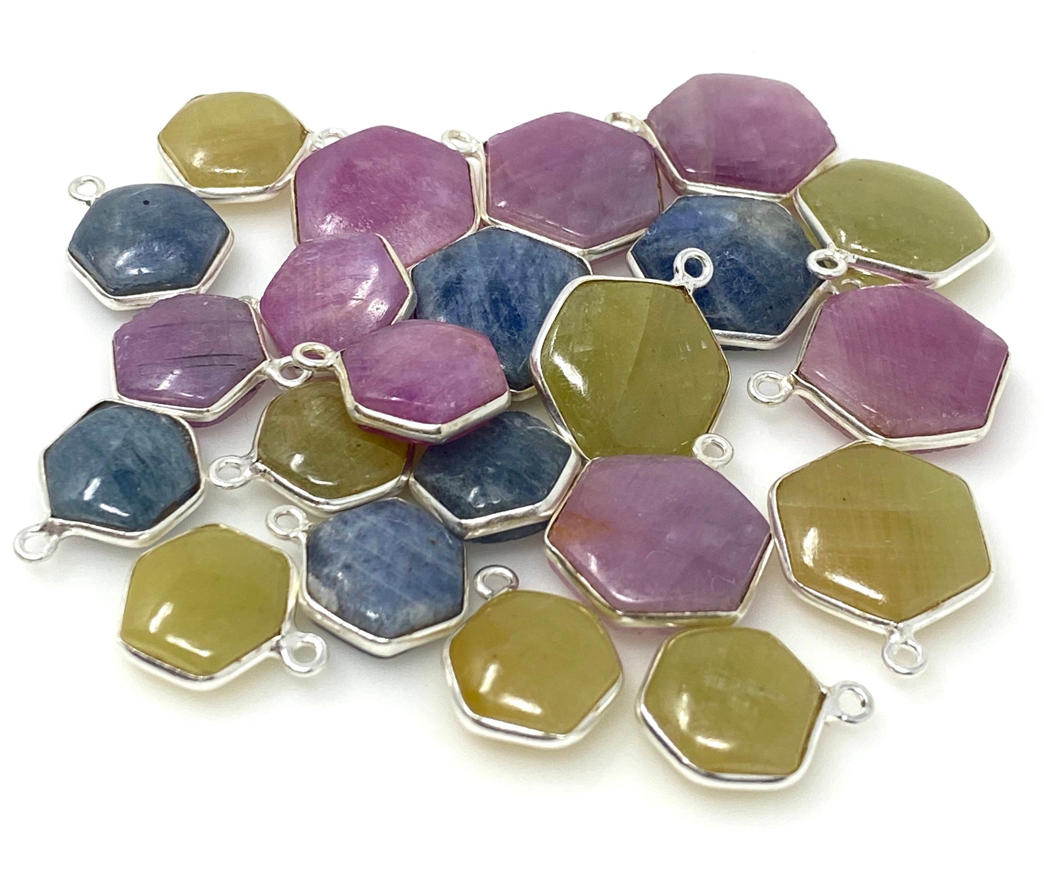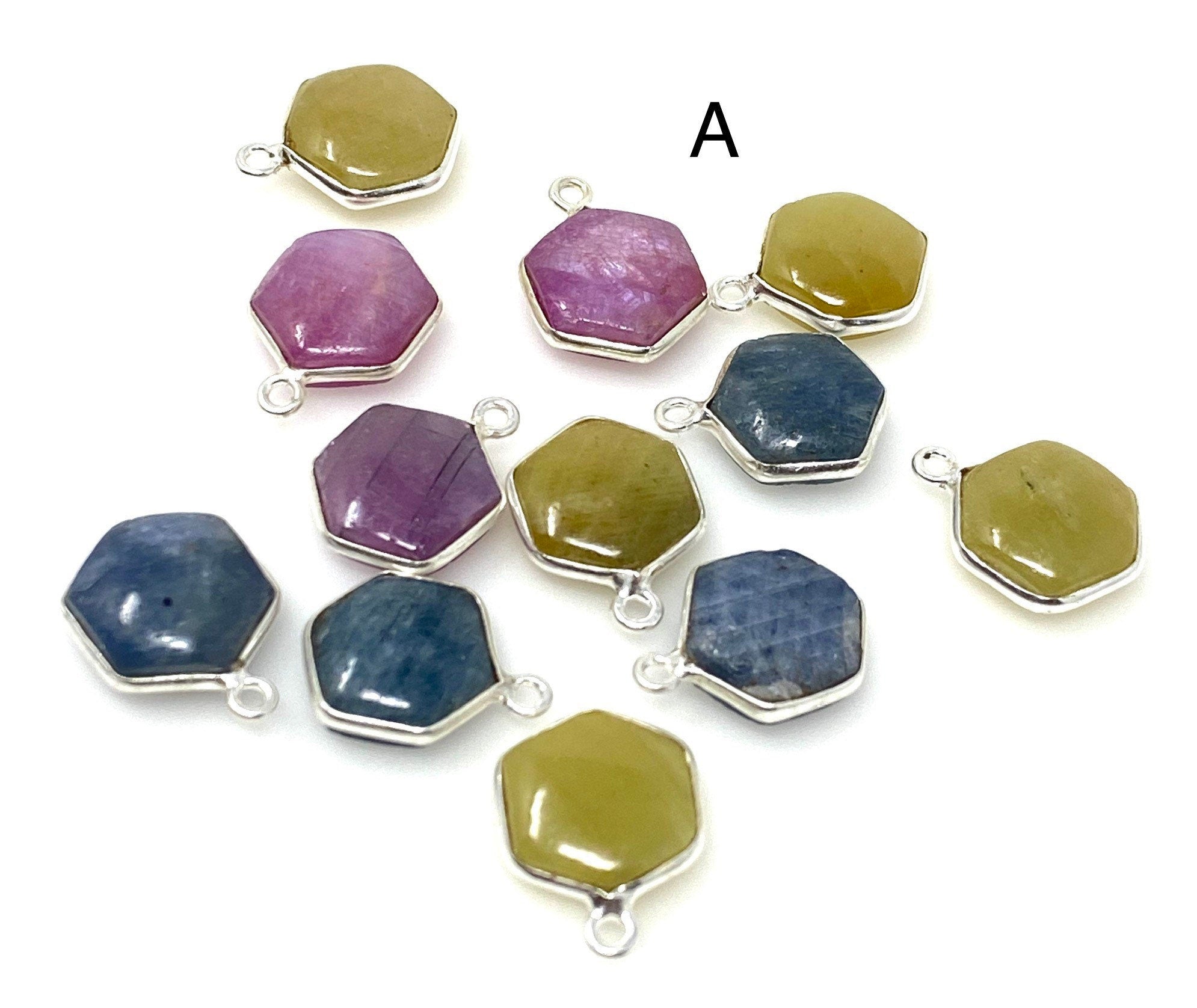 Natural Multi Sapphire Gemstone Charms, Silver Jewelry Supplies, Bulk Wholesale Charms, Yellow Sapphire Blue Sapphire Pink Sapphire , 11 Pcs