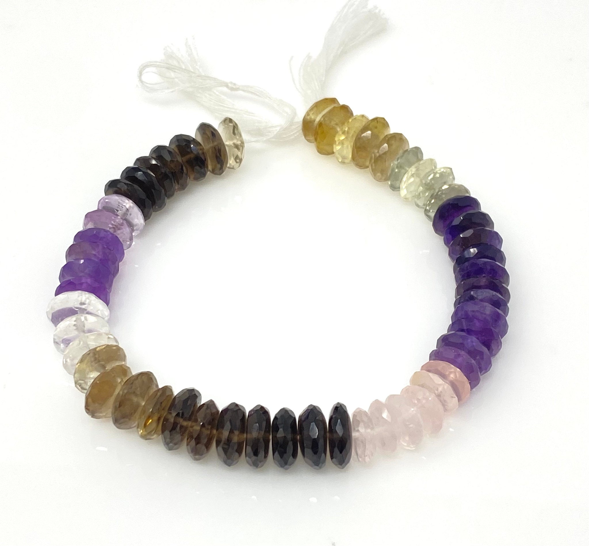 Natural Multi Stone German Cut Gemstone Beads - Rose Quartz/ Amethyst/ Citrine / Smokey Quartz/ Green Amethyst , Spiritual Healing Crystals