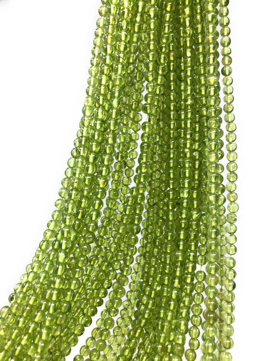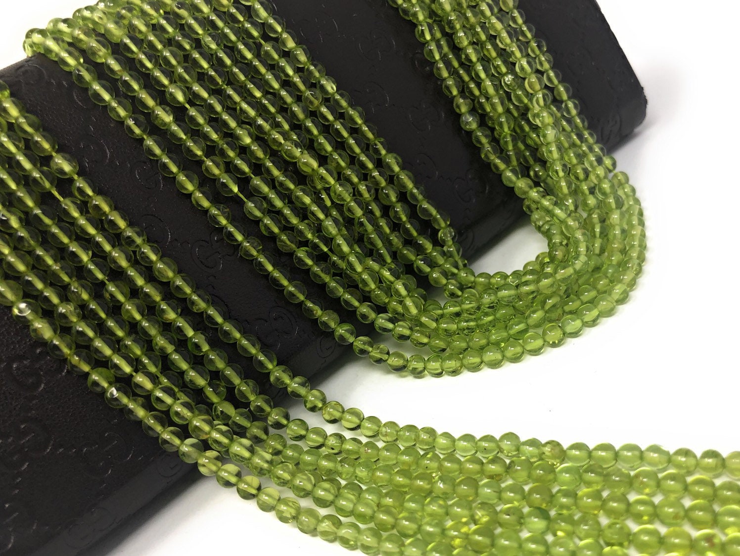 Natural Peridot Smooth Gemstone Beads, Genuine Gemstone Wholesale Beads, Bulk Beads for Jewelry Making, 4mm Beads, 13.75" Strand