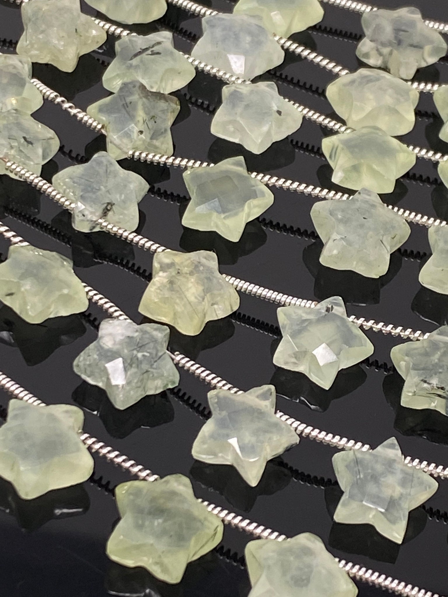 Natural Prehnite Beads, Gemstone Star Beads, Bulk Wholesale Beads, Jewelry Supplies, 10mm - 10.5mm, 5” Strand/ 10 Beads