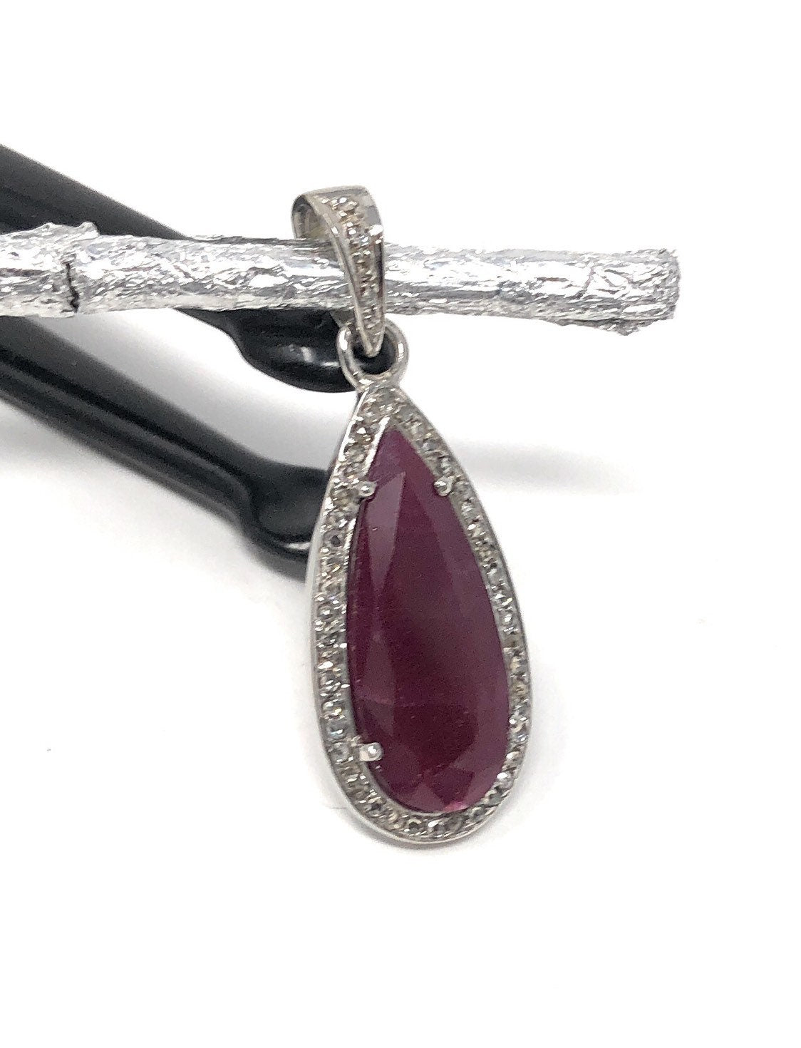 This beautiful Handmade AAA+ Grade Natural Ruby Gemstone Drop Shape 925 Sterling Silver Pave Diamond Pendant is an excellent choice for any occasion and makes a great gift for the loved ones.