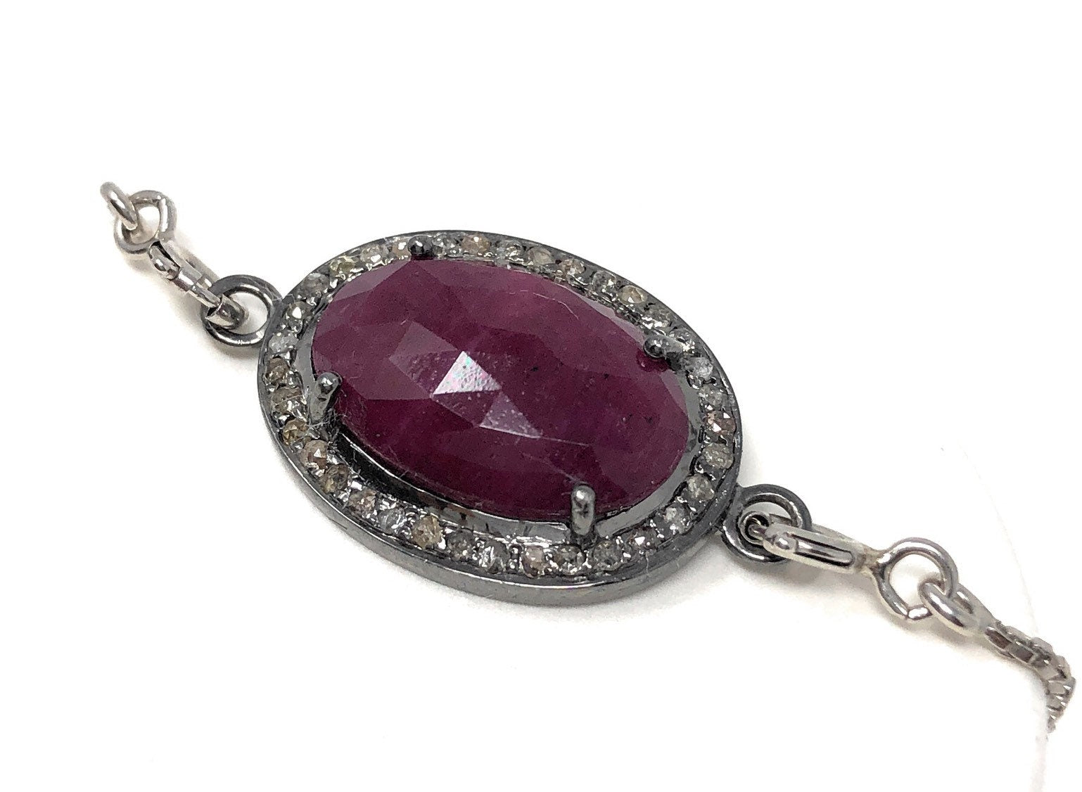 This beautiful Handmade AAA+ Grade Natural Ruby Gemstone 925 Sterling Silver Pave Diamond Adjustable Bracelet is made with Rhodium Polish Adjustable Silver Chain and Oxidized Sterling Silver Bezel Set Ruby Charm Connector and is an excellent choice for any occasion and makes a great gift for the loved ones.