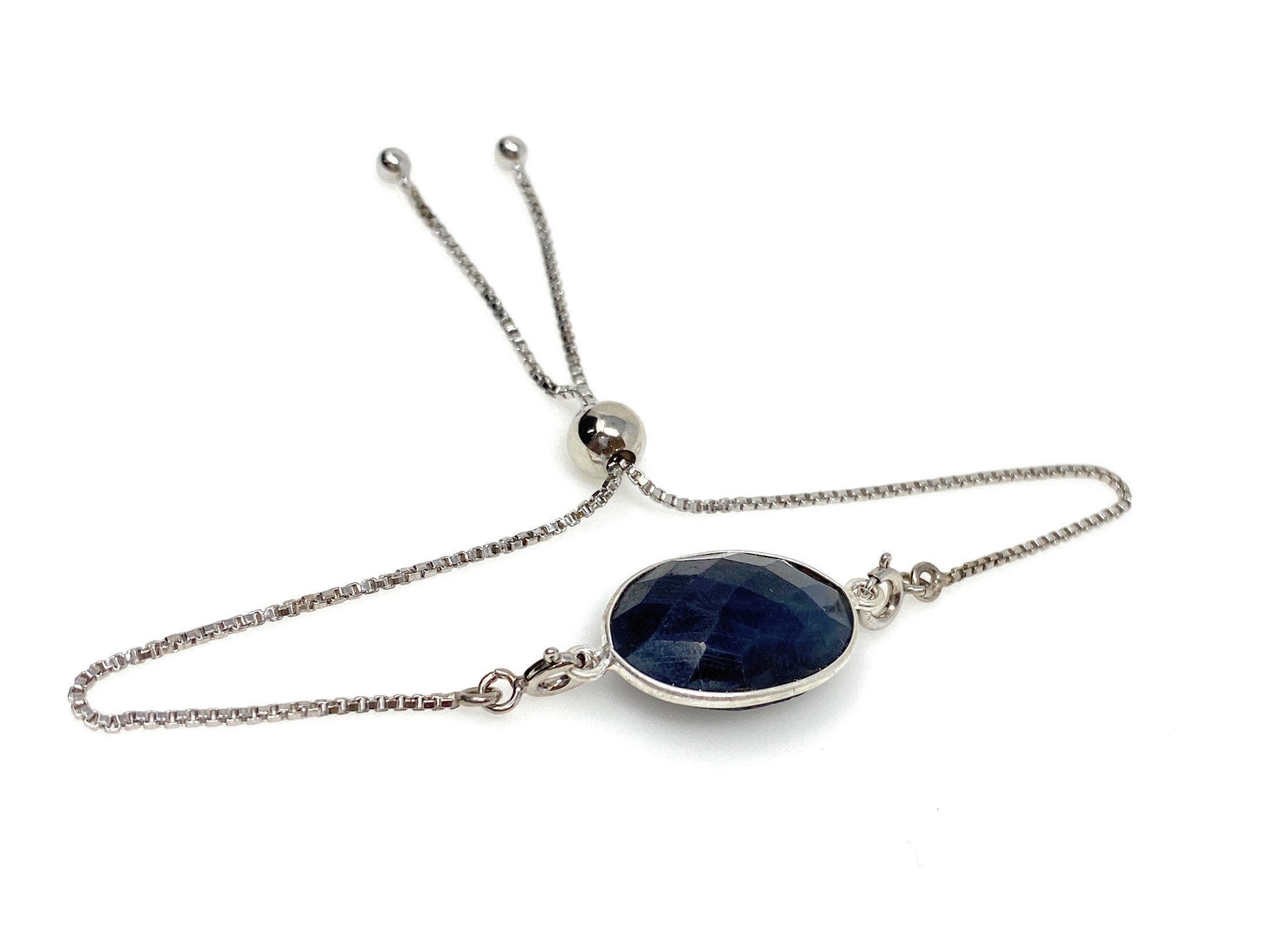 Natural Sapphire Gemstone Bracelet, Sterling Silver Adjustable Bolo Bracelet, Blue Sapphire Jewelry, September Birthstone, Gifts for Her