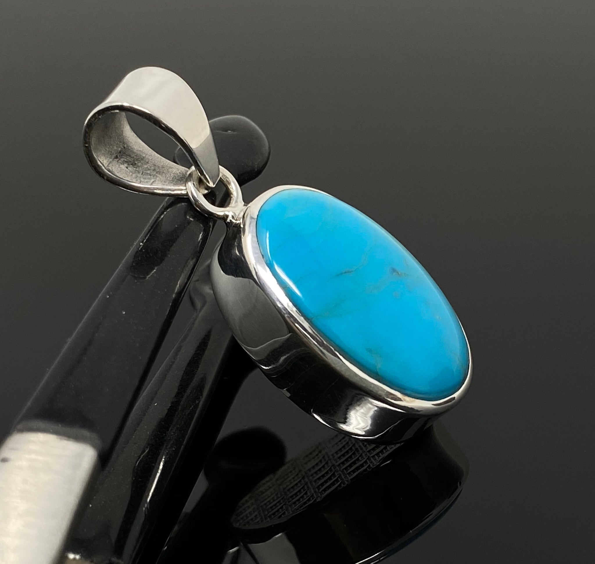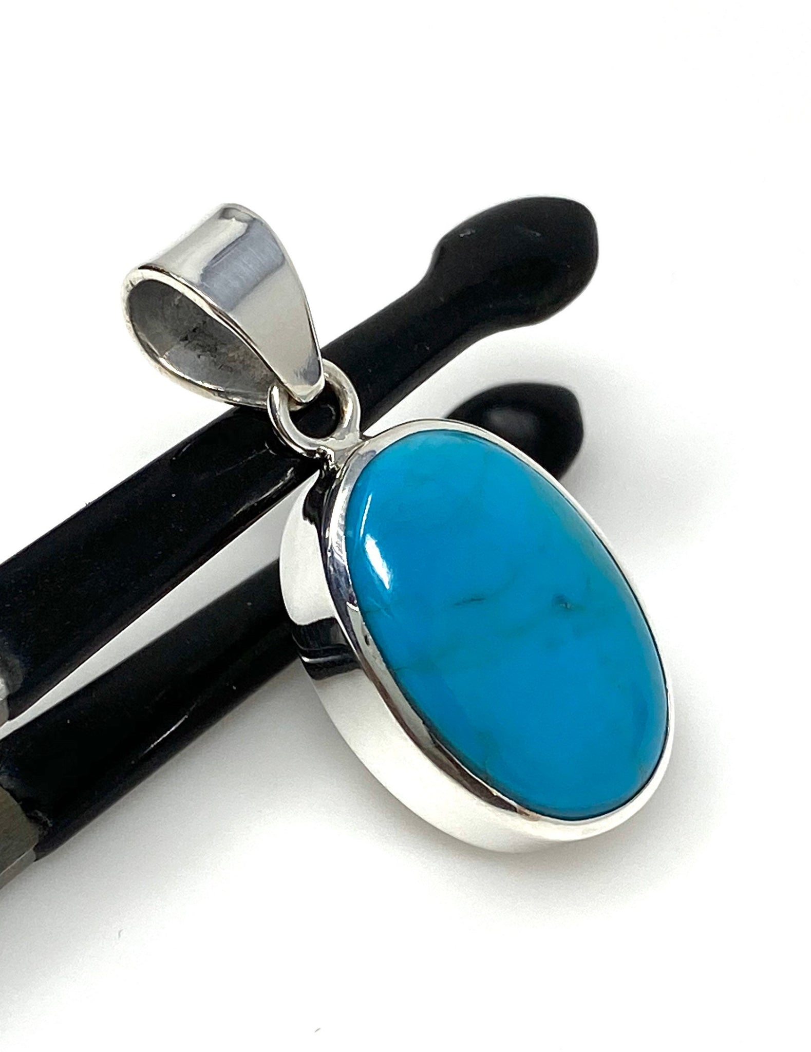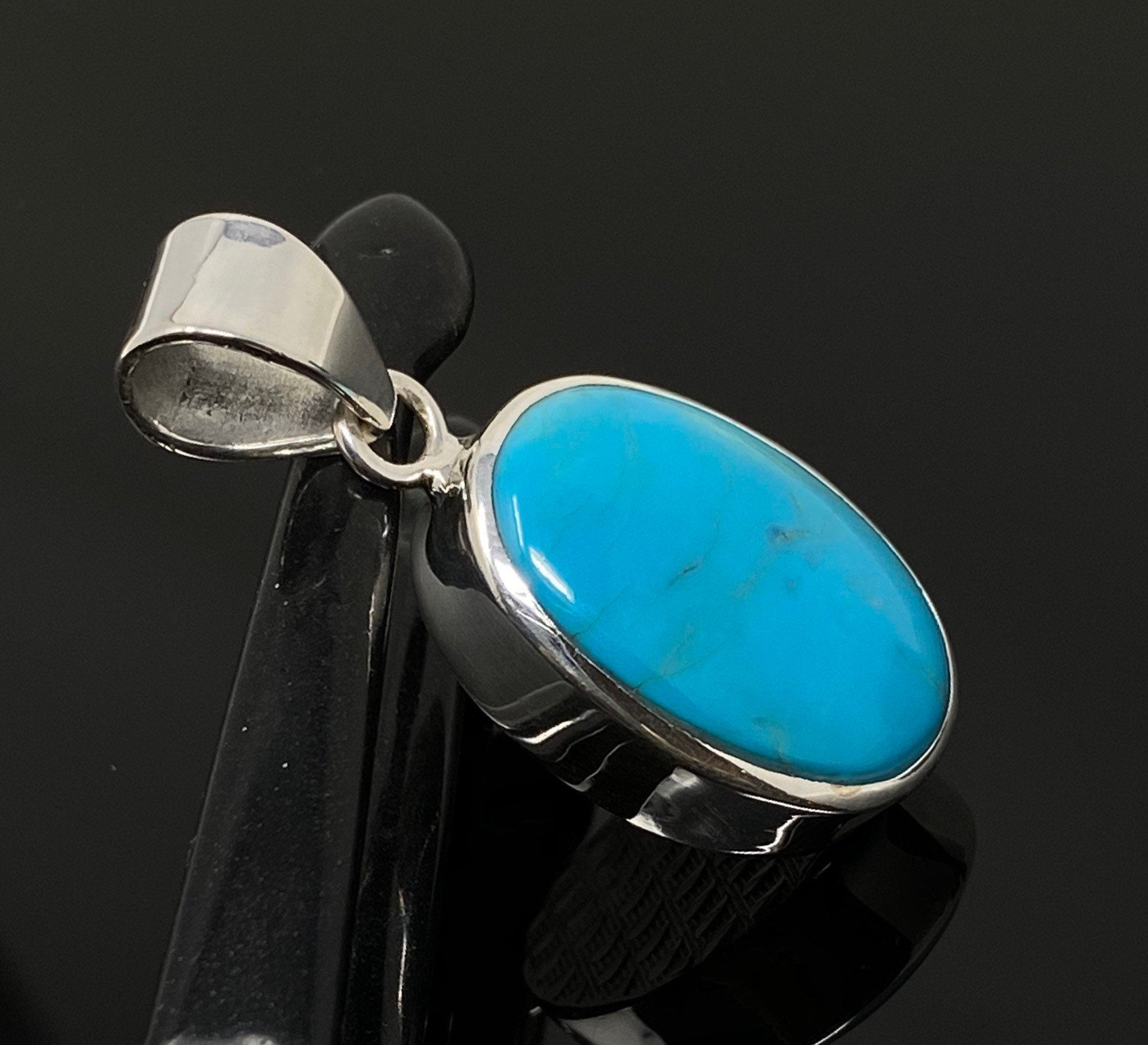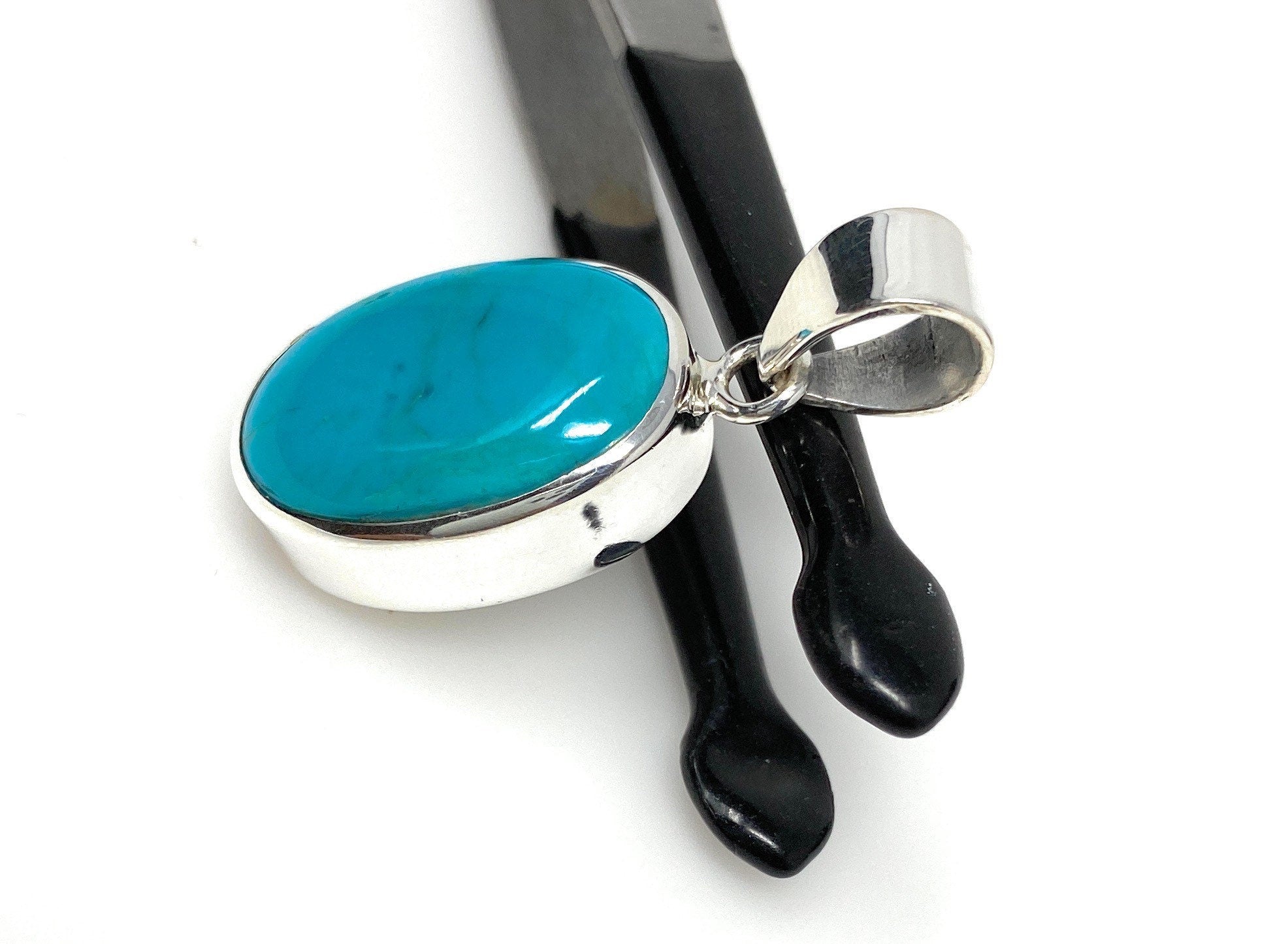 Natural Genuine Sleeping Beauty Turquoise Sterling Silver Gemstone Pendant