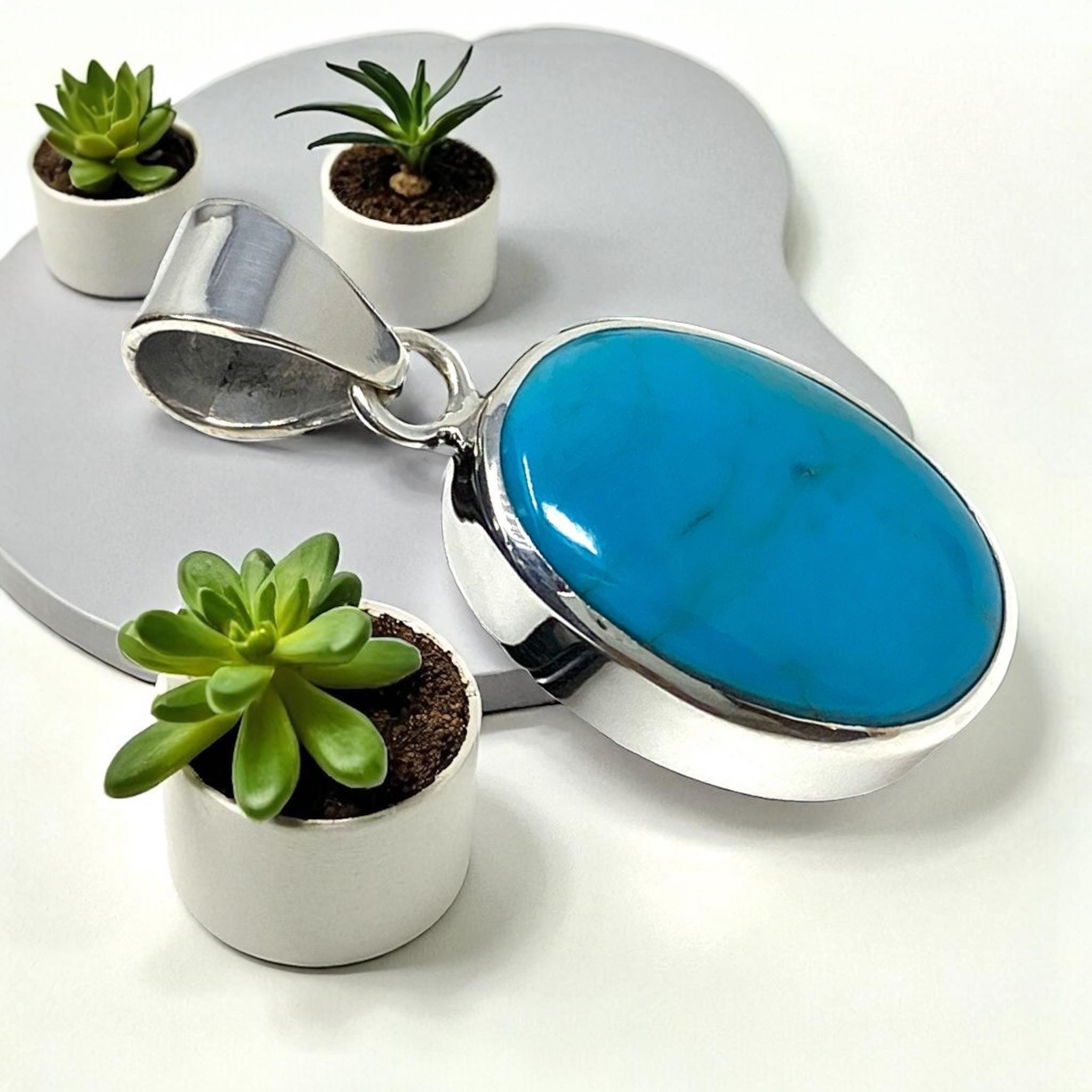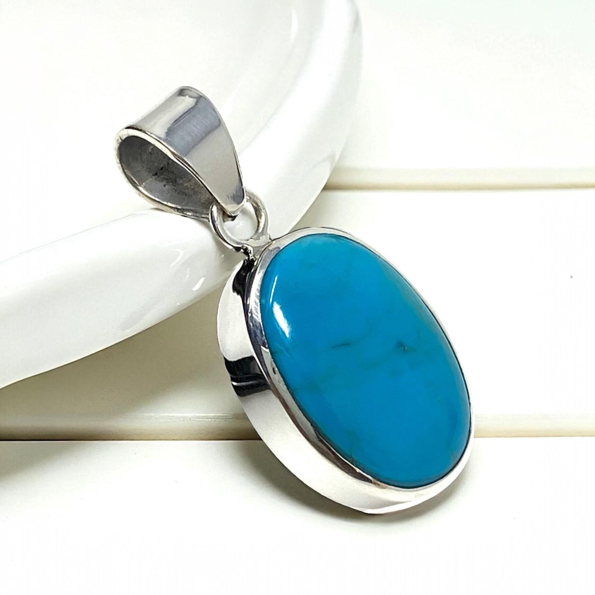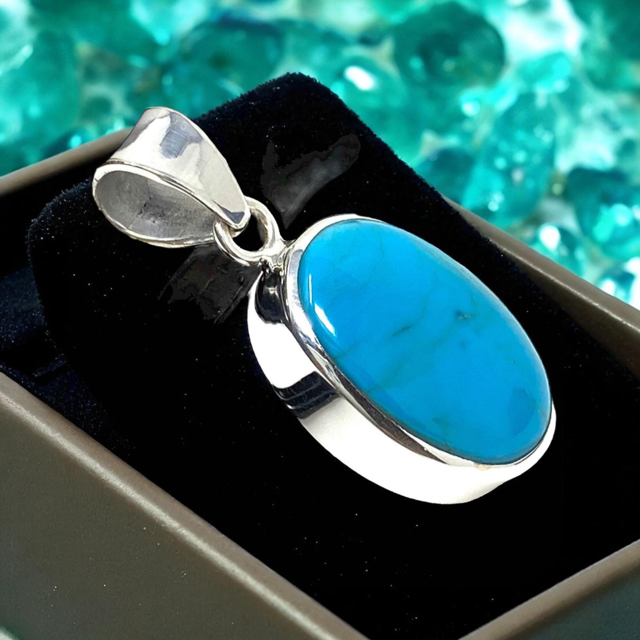 Natural Sleeping Beauty Turquoise Pendant, Sterling Silver Turquoise Gemstone Pendant, Spiritual Healing Crystal Pendant, Chakra Jewelry