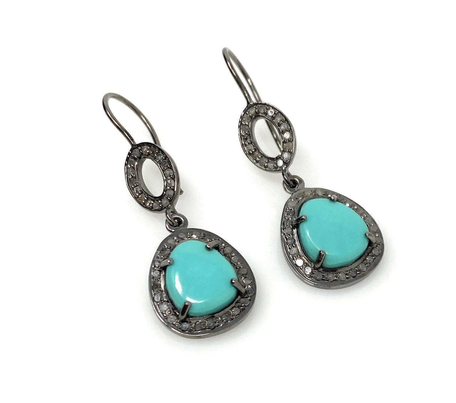 These high quality beautiful Turquoise Earrings earrings are made with meticulous care using genuine diamonds and Sterling Silver Gray Black Rhodium.
