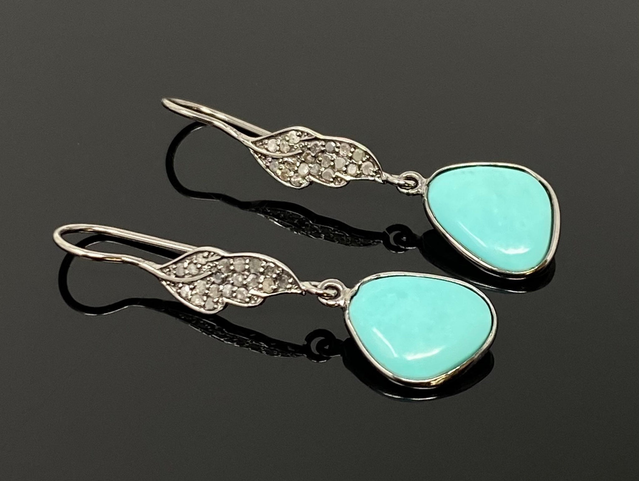 Natural Sleeping Beauty Turquoise Pave Diamond Earrings.