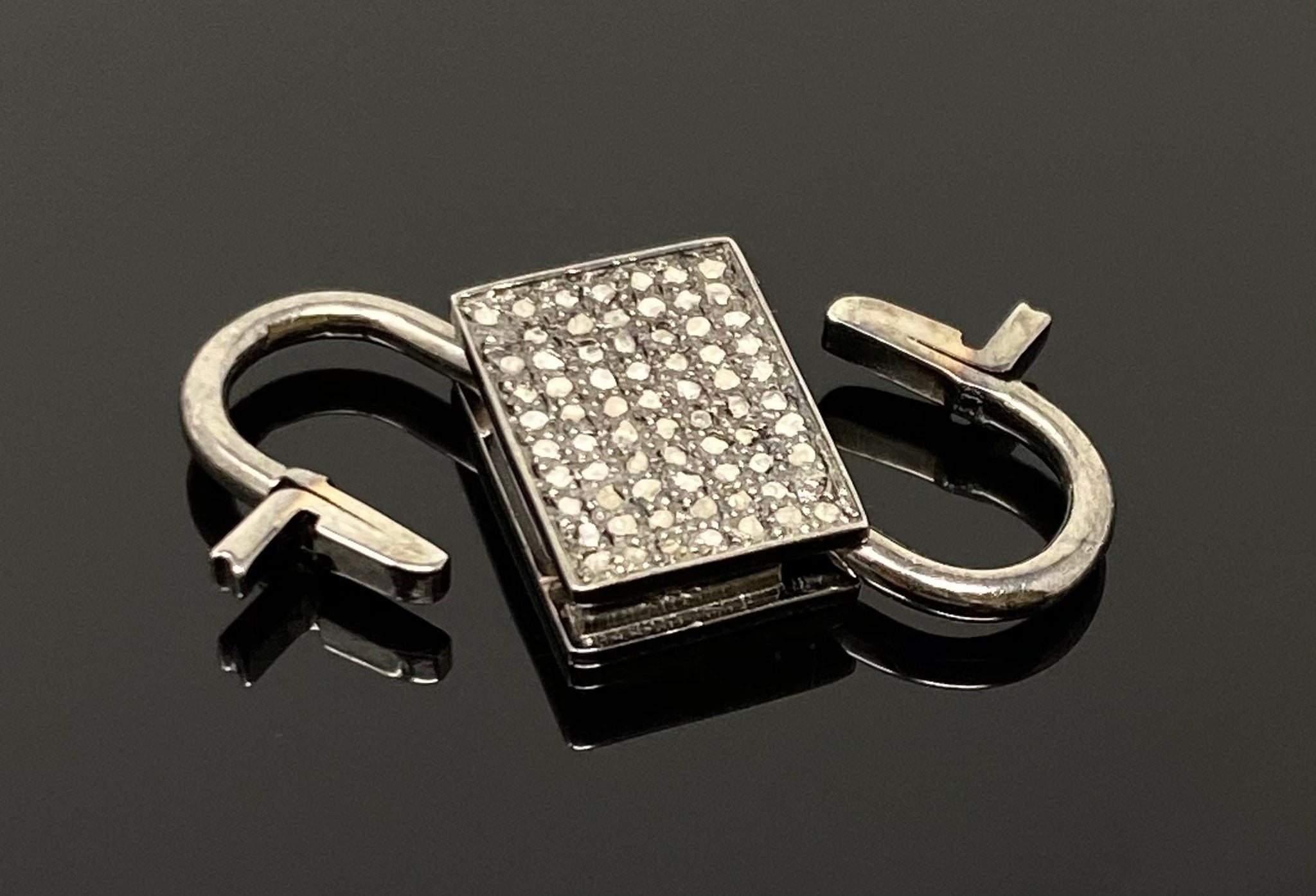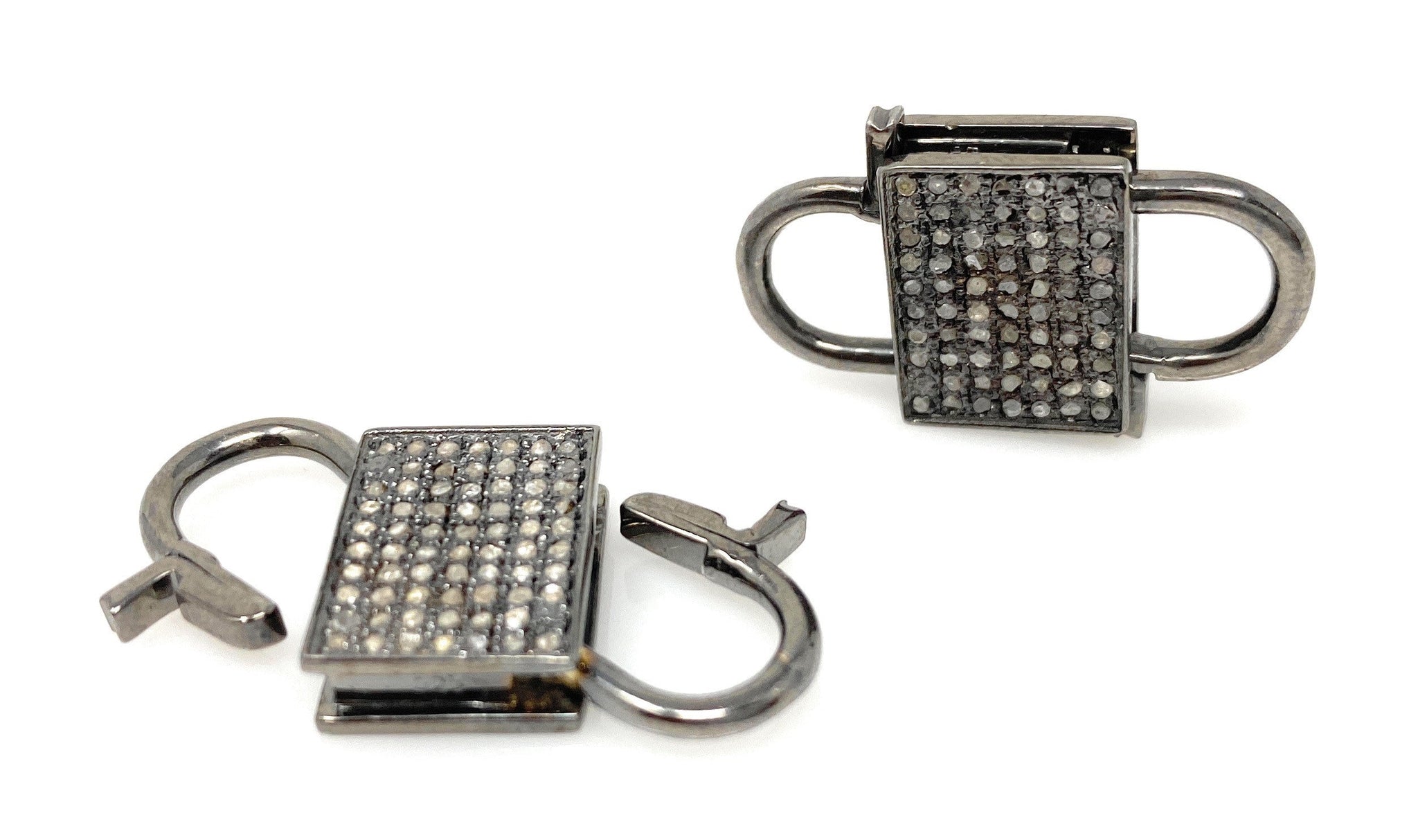 Sterling Silver Pave Diamond Double Sided Clasp Lock for Jewelry Making at Wholesale Price.