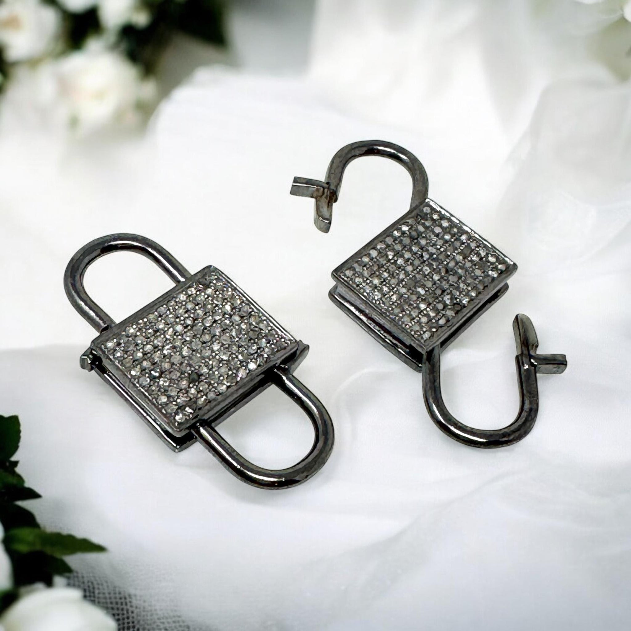 This Beautiful Handmade Clasp Lock is made in Black Rhodium over Sterling Silver using Genuine Diamonds in Pave Setting.