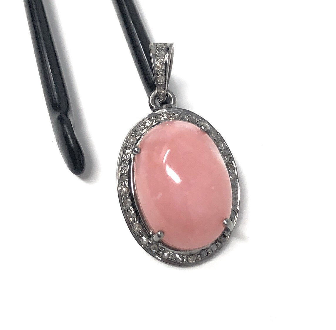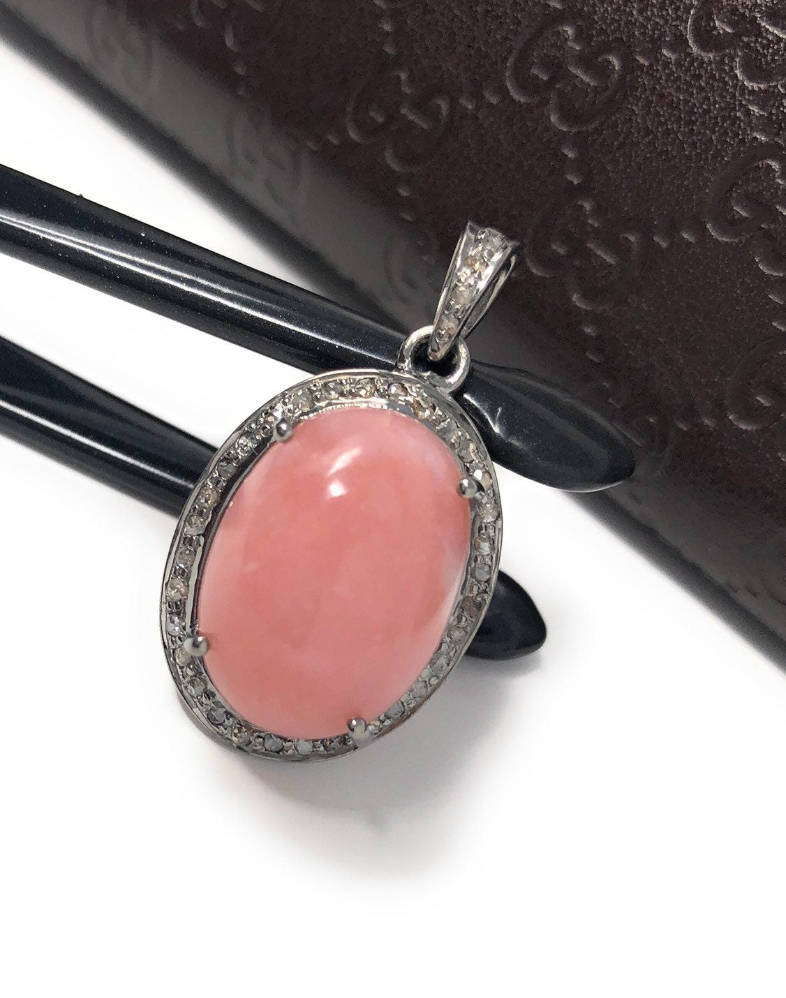 This beautiful Handmade AAA Grade Natural Peruvian Pink Opal Gemstone Oval Shape Oxidized 925 Sterling Silver Pave Diamond Pendant is an excellent choice for any occasion and makes a great gift for the loved ones.