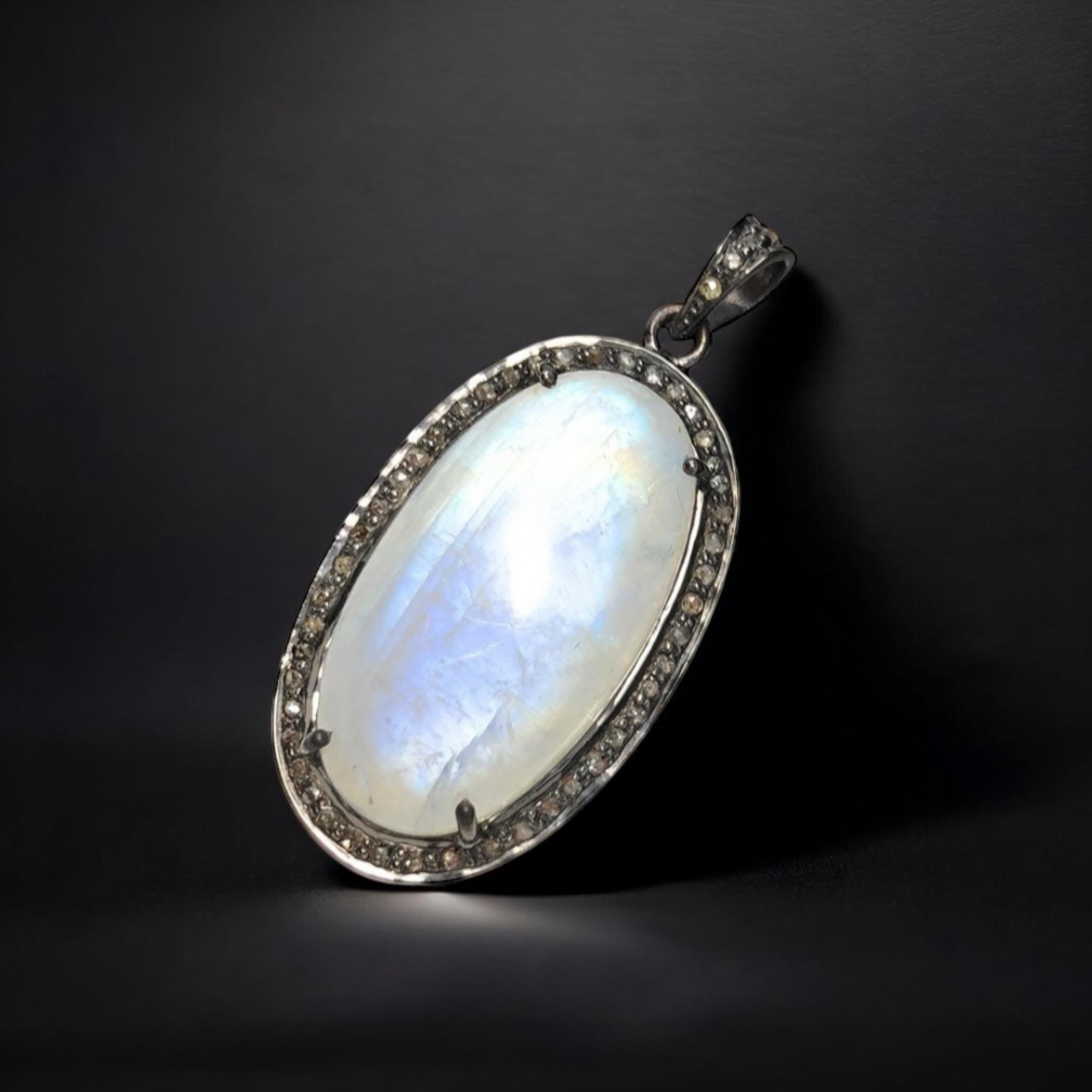 This exclusive beautiful Handmade AAA+ Grade Natural Rainbow Moonstone Gemstone Oval Shape Oxidized 925 Sterling Silver Pave Diamond Bezel Setting Pendant is an excellent choice for any occasion and makes a great gift for the loved ones.
