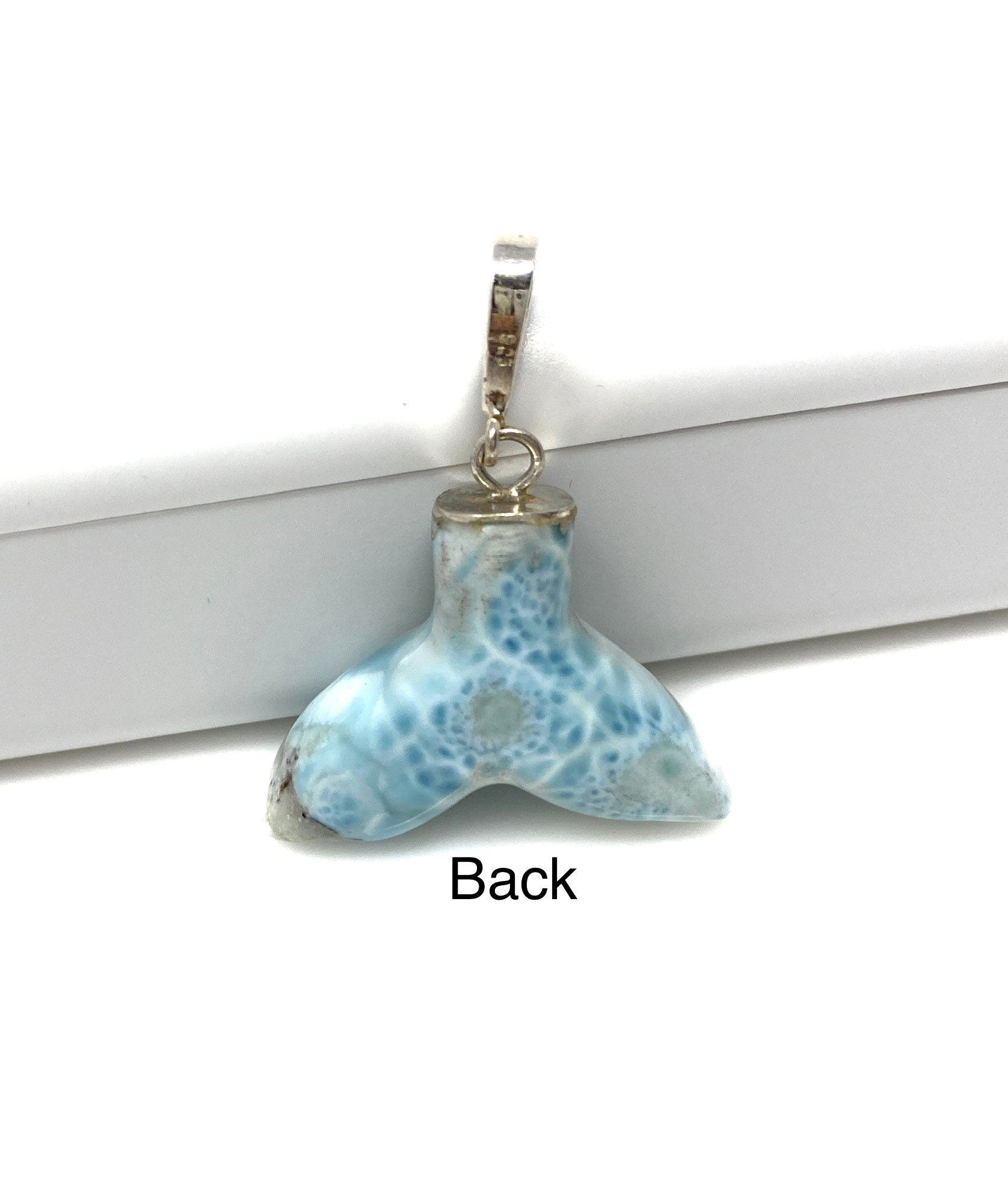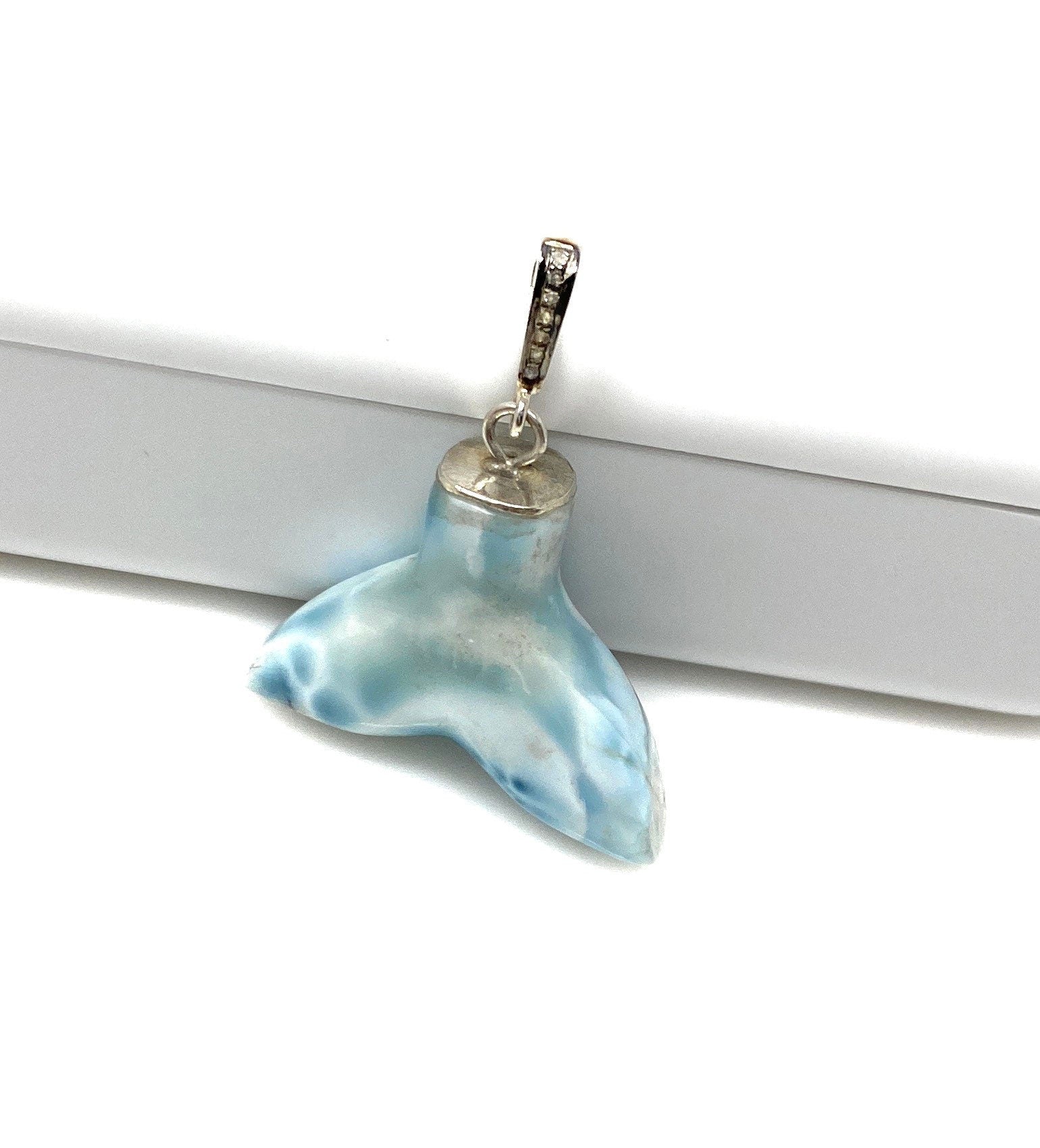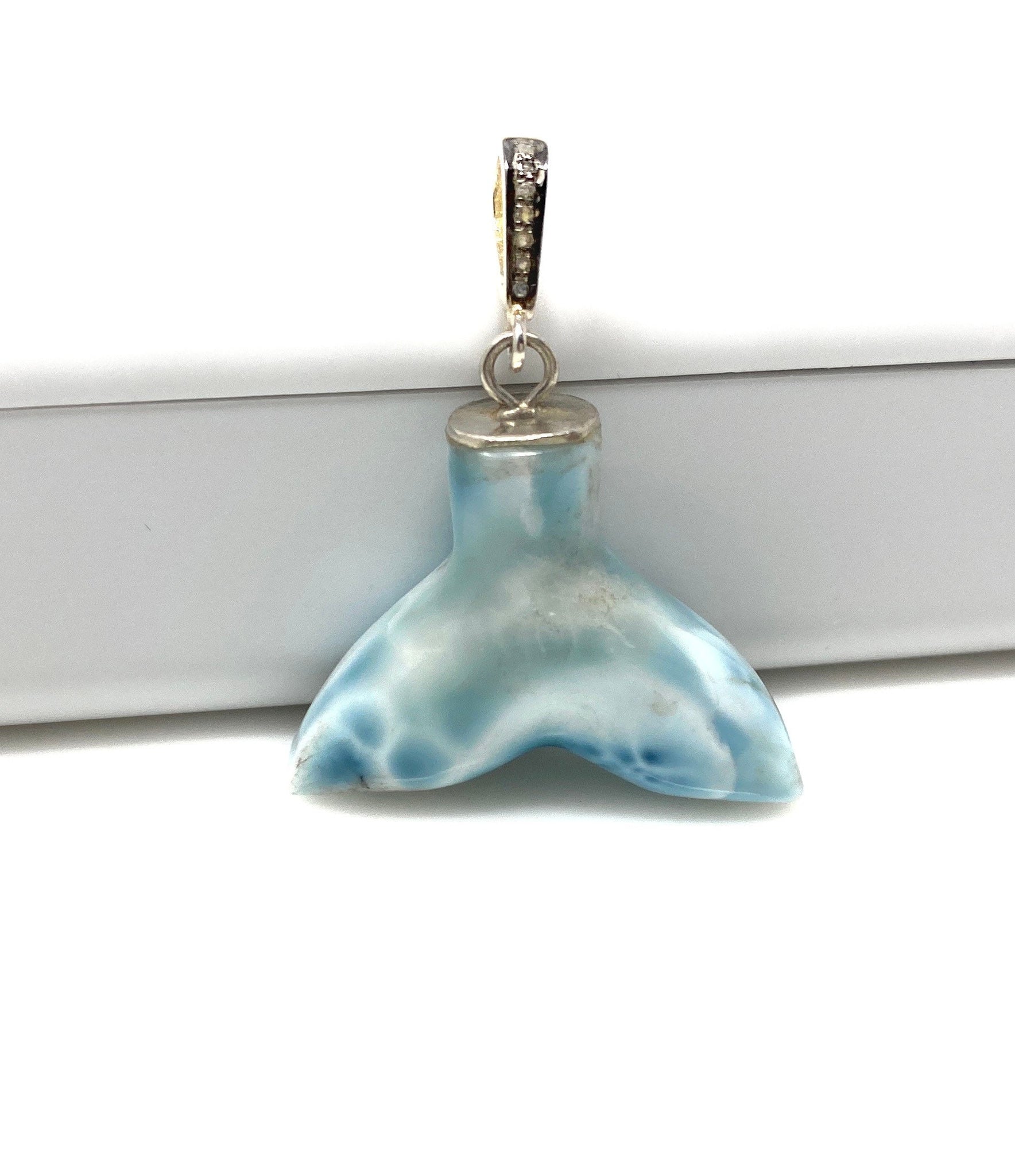 Rare Larimar Mermaid Tail Pendant, Sterling Silver Pave Diamond Pendant, Bohemian Jewelry, Larimar Whale Tail Pendant