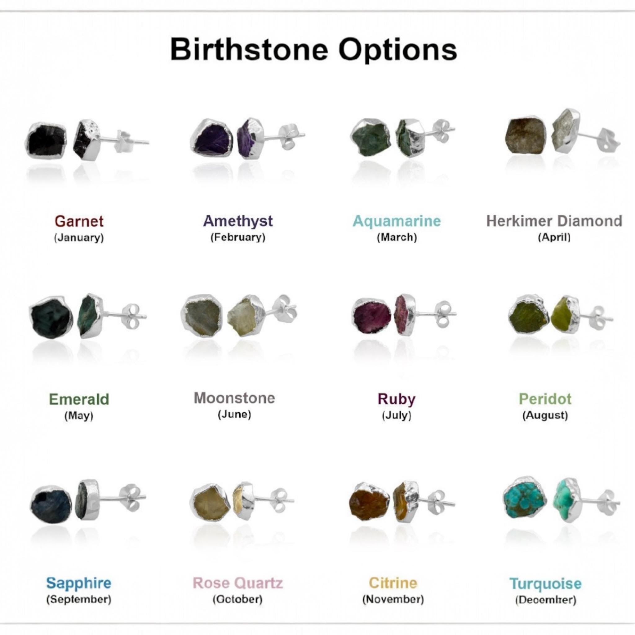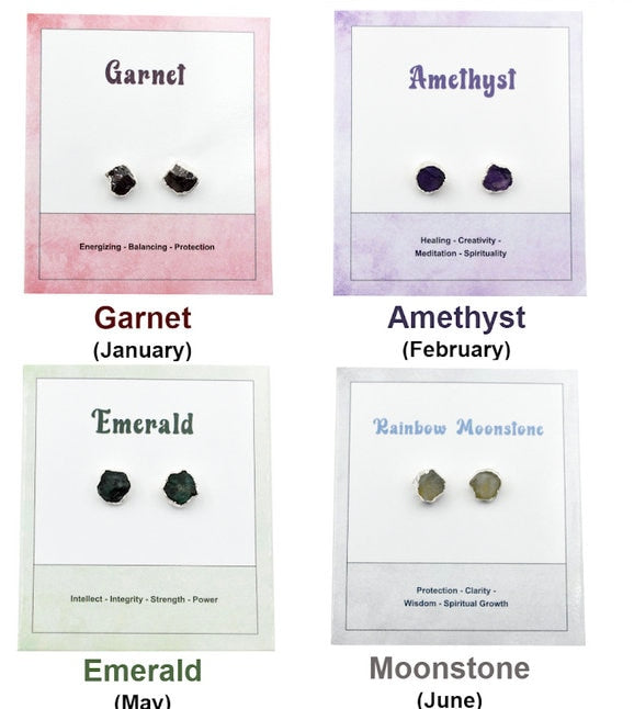 Sterling Silver Healing Crystal Raw Birthstone Gemstone Stud Earrings at Wholesale Price