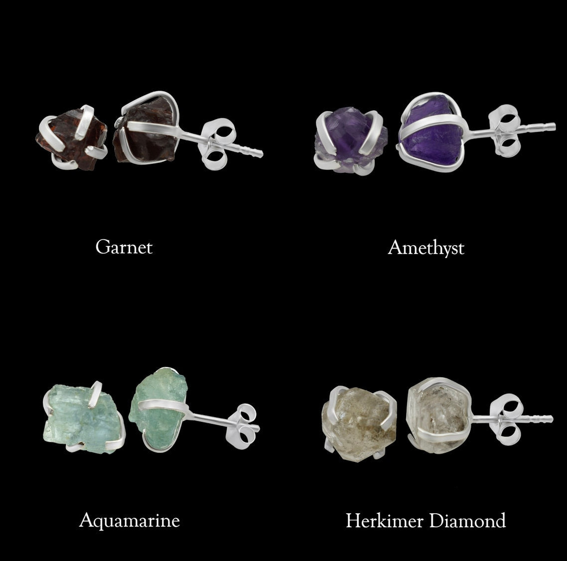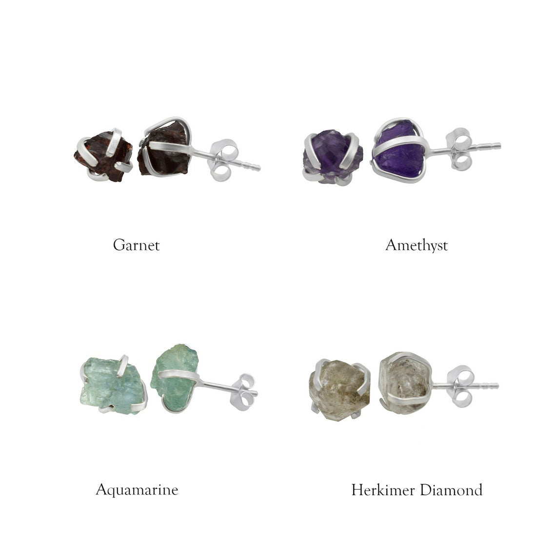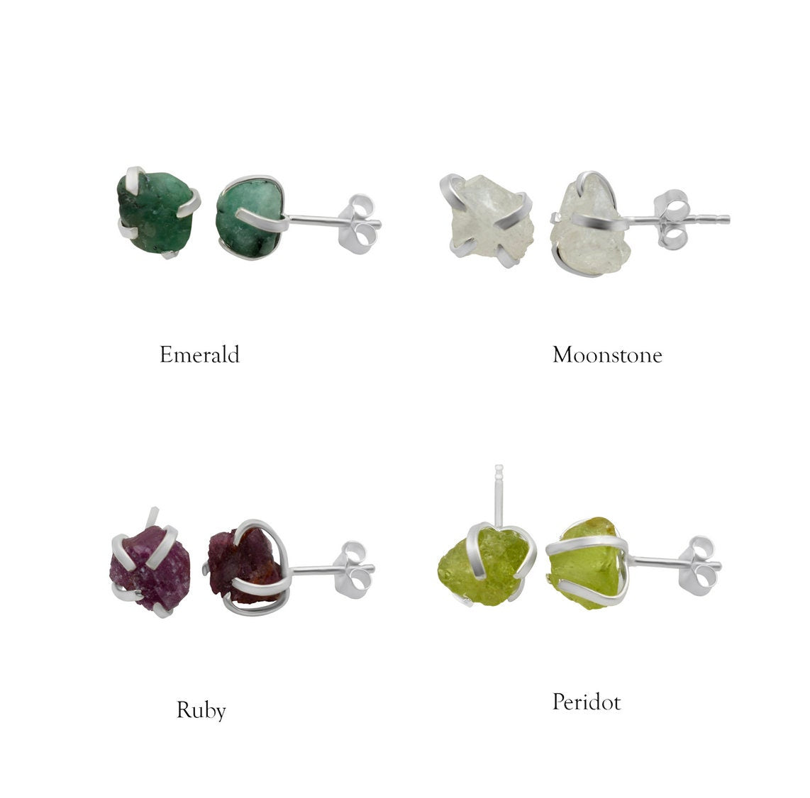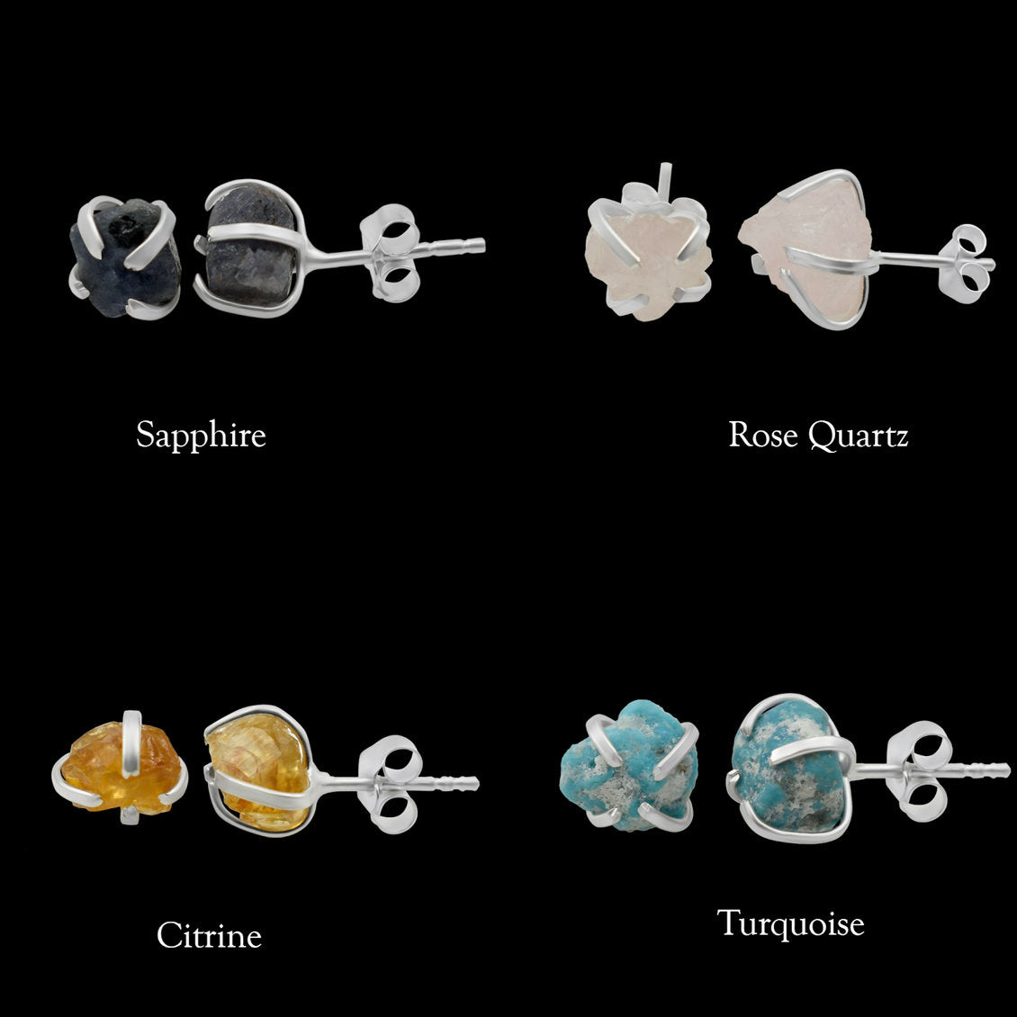 These Natural Rough Handmade Gemstone Stud Earrings are made with raw cut gemstone in a 4 Prong Setting on Sterling Silver. These makes a perfect gift for the loved ones for any Occassion.