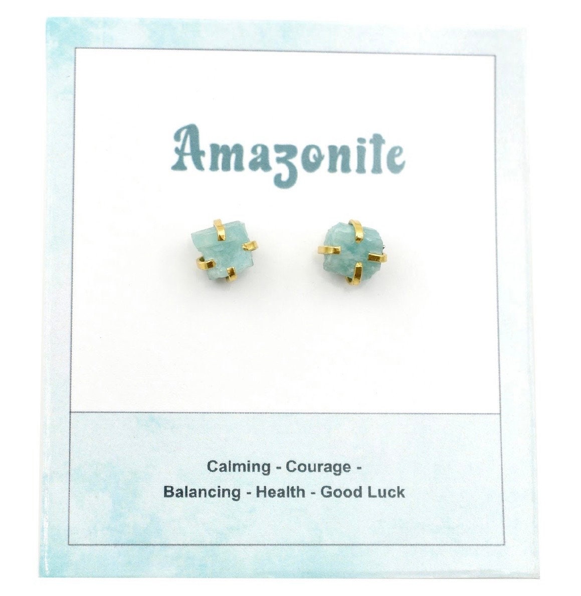 Raw Crystal Stud Earrings, Gold Plated over Silver Gemstone Stud Earrings, Healing Crystal Rough Gemstone Studs Gifts for Her