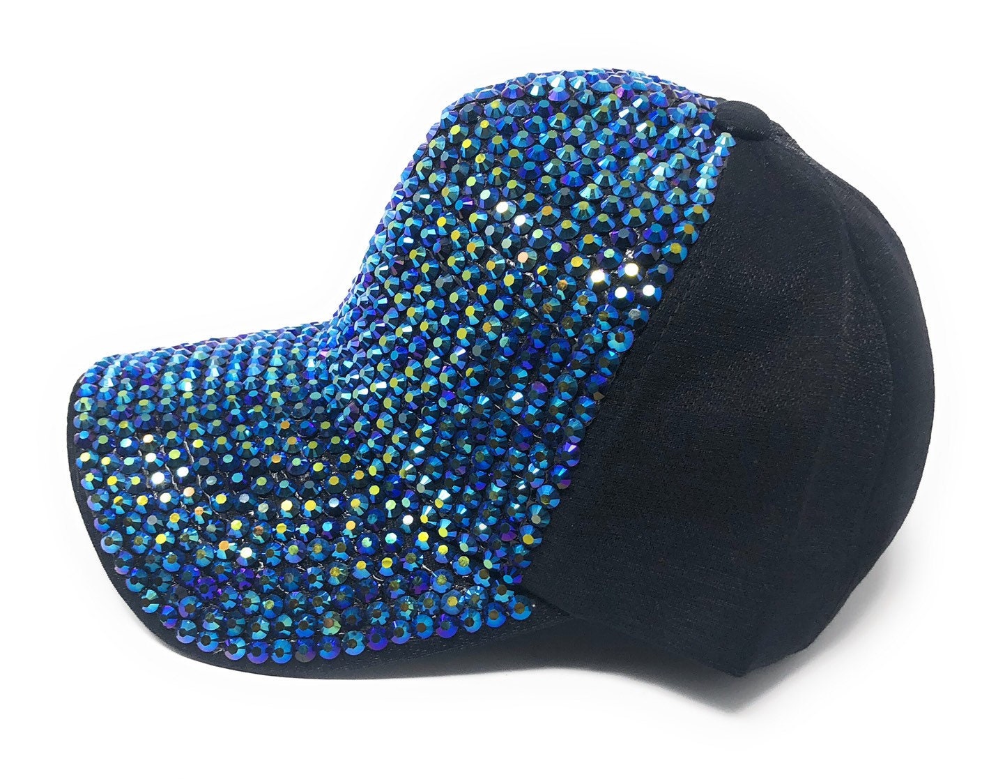 Rhinestones Baseball Cap, Bling Hat, Adjustable Hat, Blue Rhinestone Bling Hat, Rhinestone Sun Visors Baseball Cap