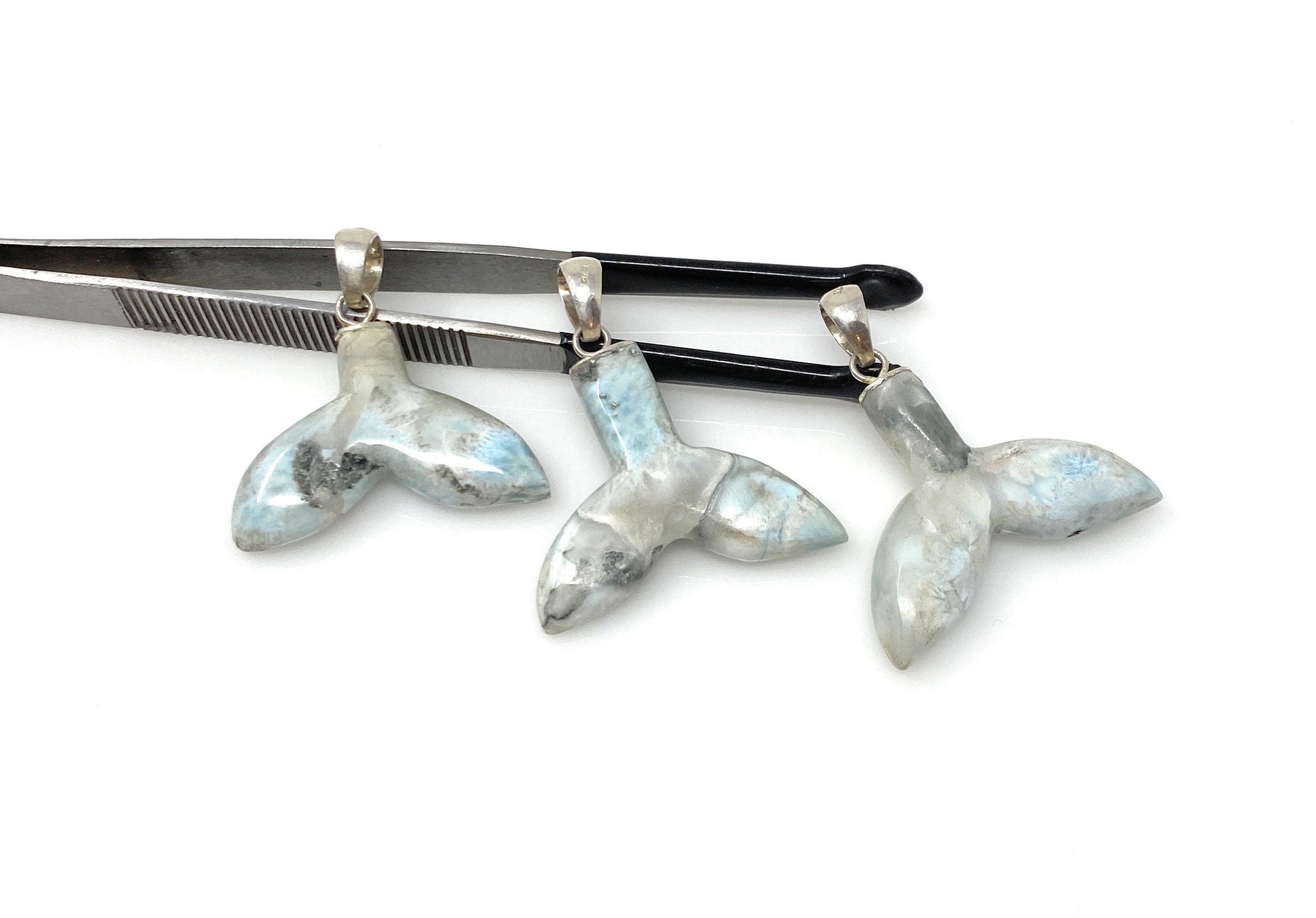 Set of 3Pcs Larimar Mermaid Tail Pendants, Sterling Silver Pendant, Bohemian Jewelry, Larimar Whale Tail Pendant
